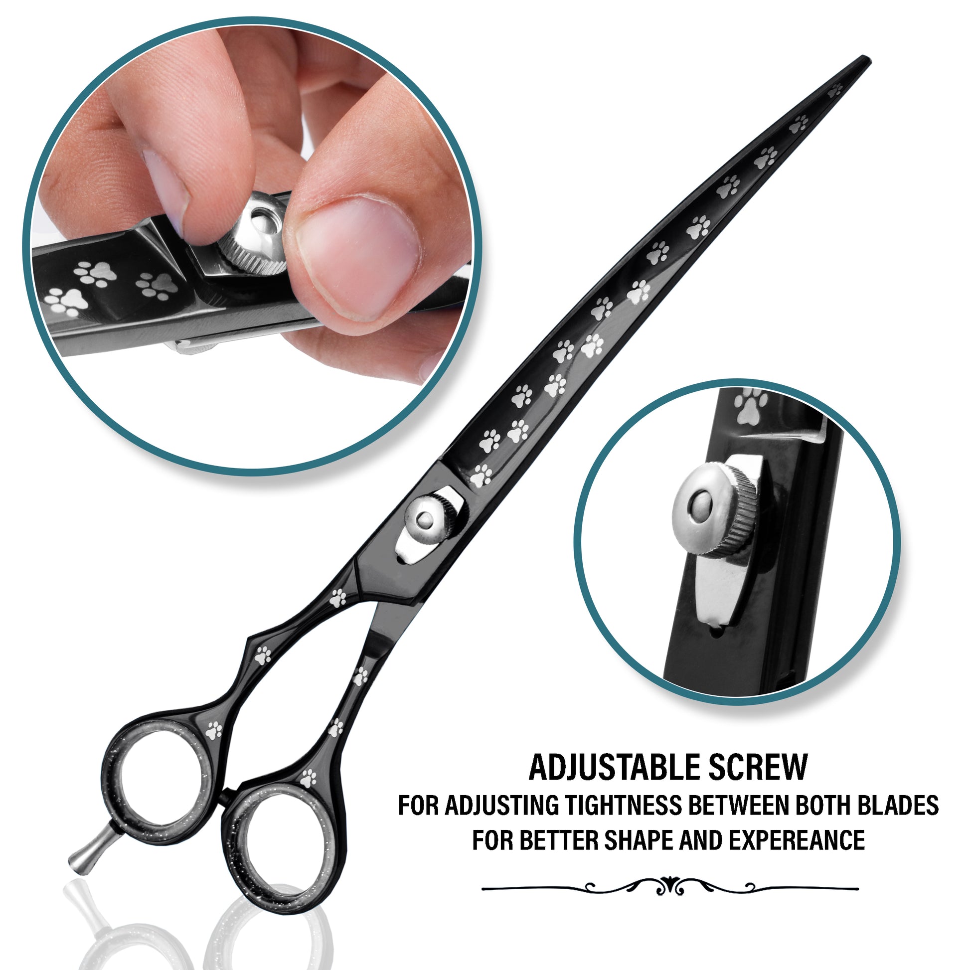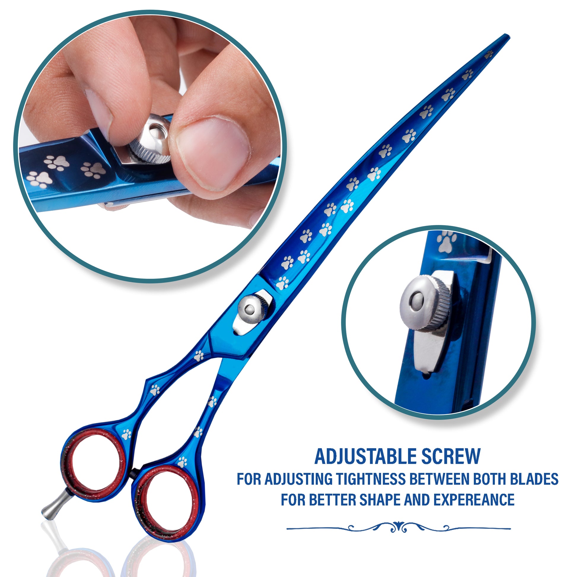 Curved Scissors + Free Scissor case Grooming Scissors Pet Grooming Shears Handmade Professional Grooming Hair Scissors Right Handed Scissors Gorgeous Pet Grooming Scissors for Enhanced Edge Retention.
