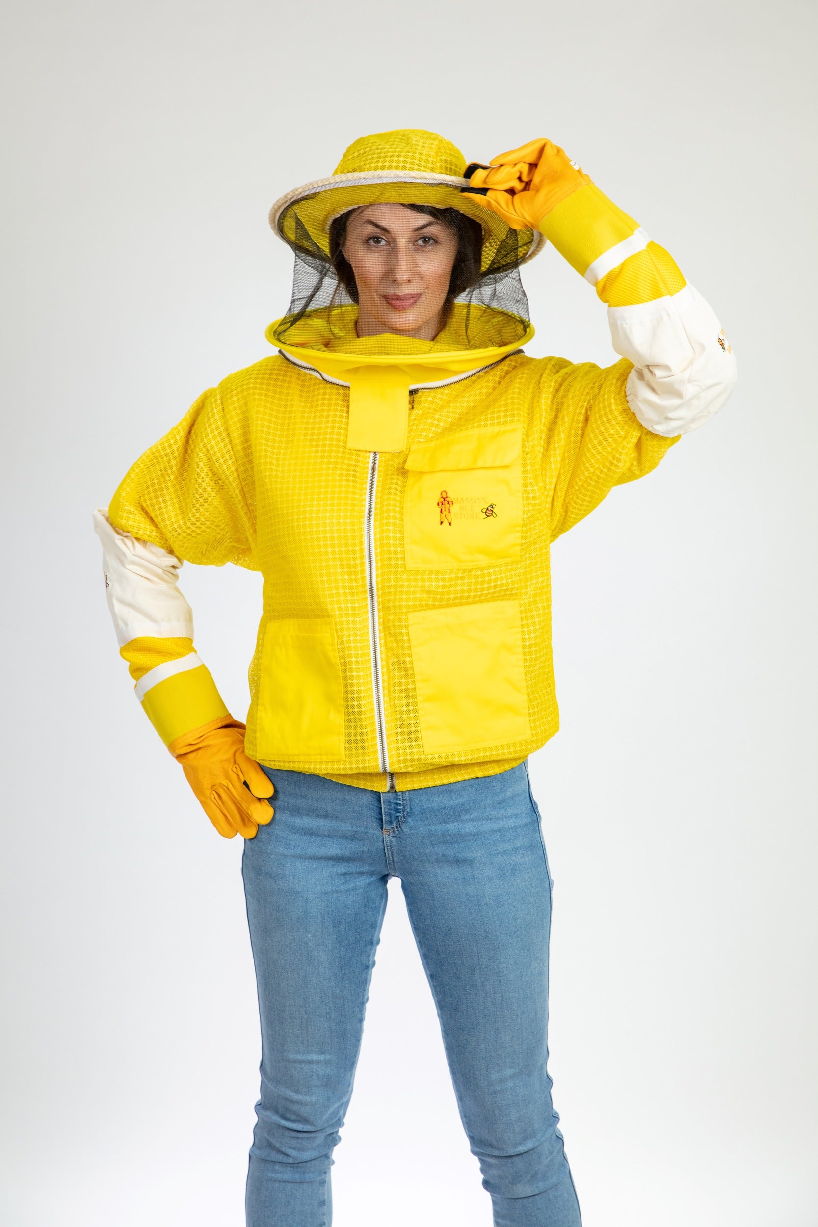 Yellow Beekeeping Ventilated Jacket with Round Veil