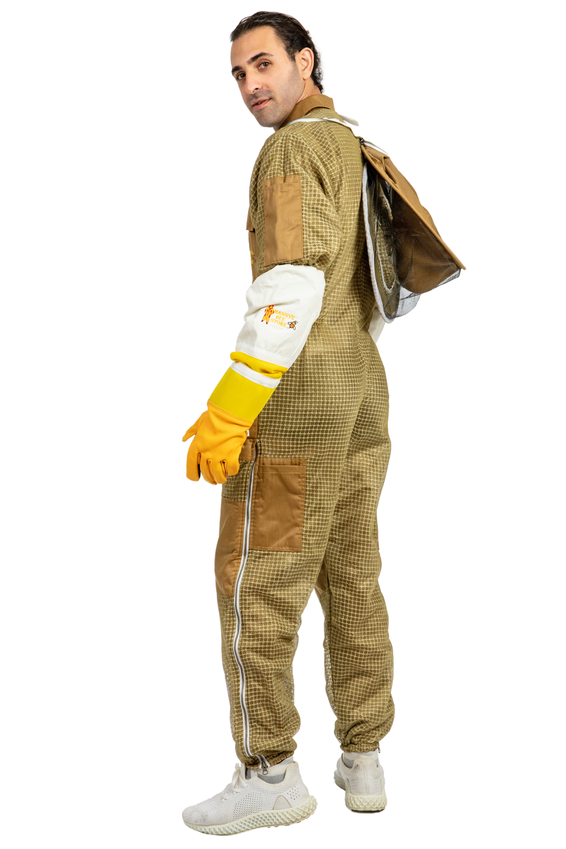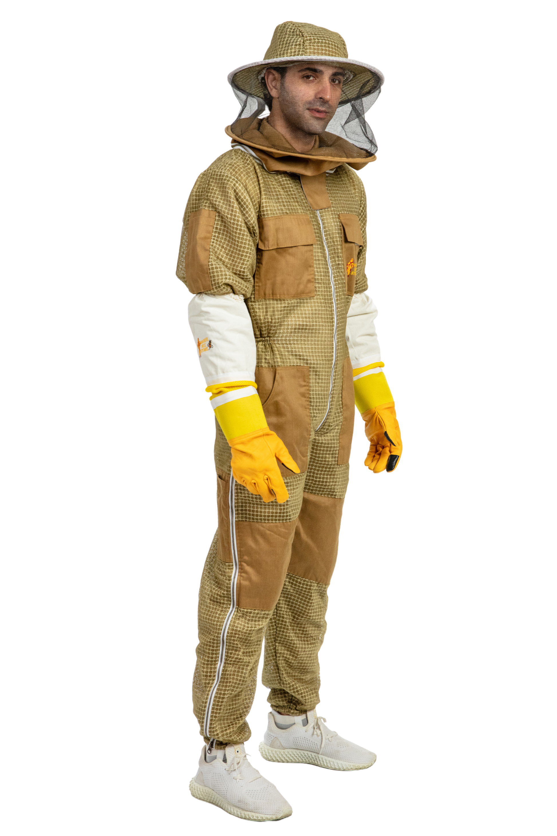 Unique protective Beekeeping Gear is made of finest high quality 3-Layers of fabric. The inner and outer Layers are made of Polyester Cotton mesh. EVA mesh fabric is sandwiched between Polyester cotton Mesh. Through this inner layer overall thickness of the beekeeping Suit is 4 mm. The thicknesses of the Suit keep bees well above your skin and have less chance of a successful sting. Although, the Jacket is made of permeable materials so it provides a high degree of ventilation. So, if you live in hot region where climate get very hot in the Bee season, then you really consider us.