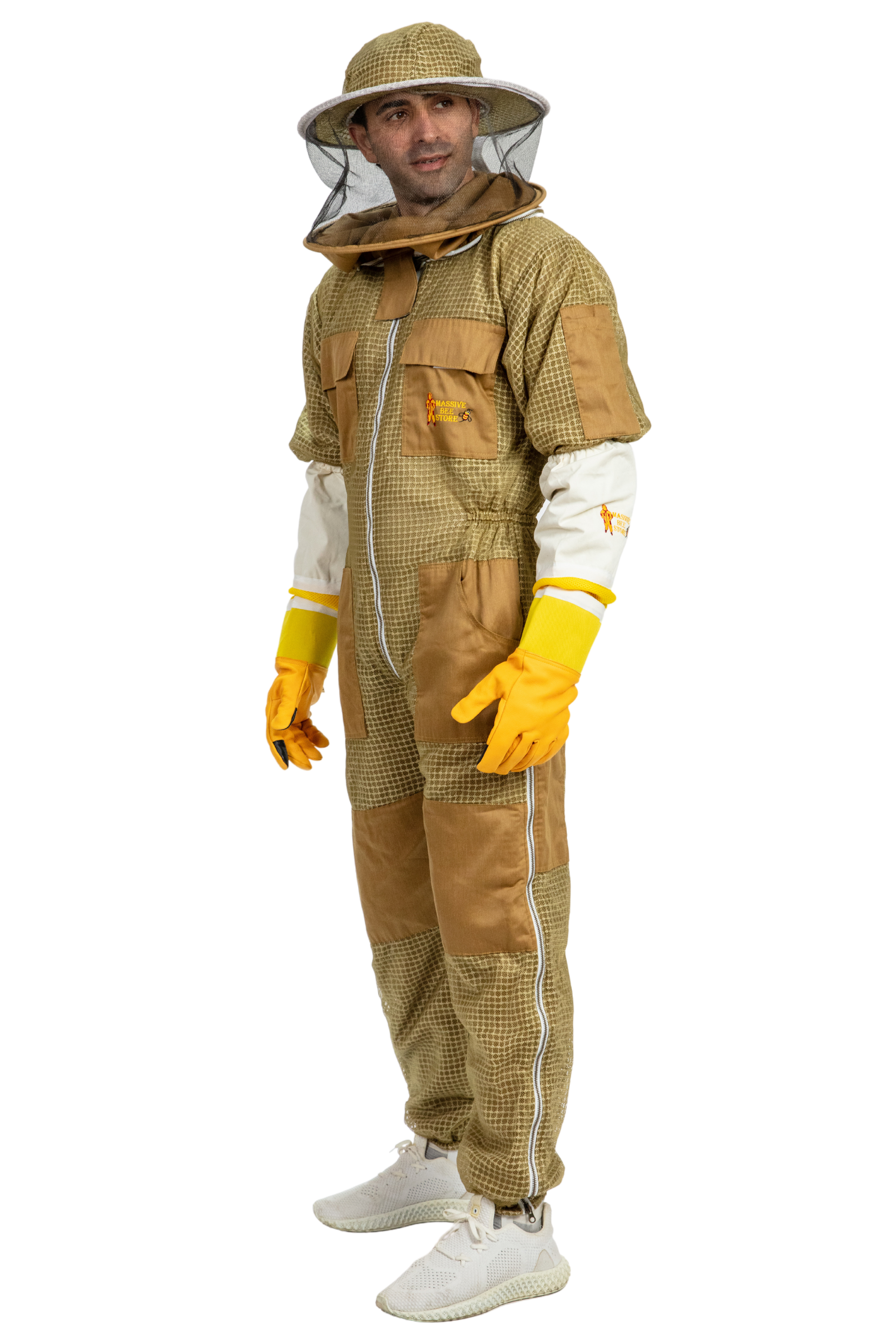 * One Khaki Beekeeping Ventilated Suit With Round Veil.