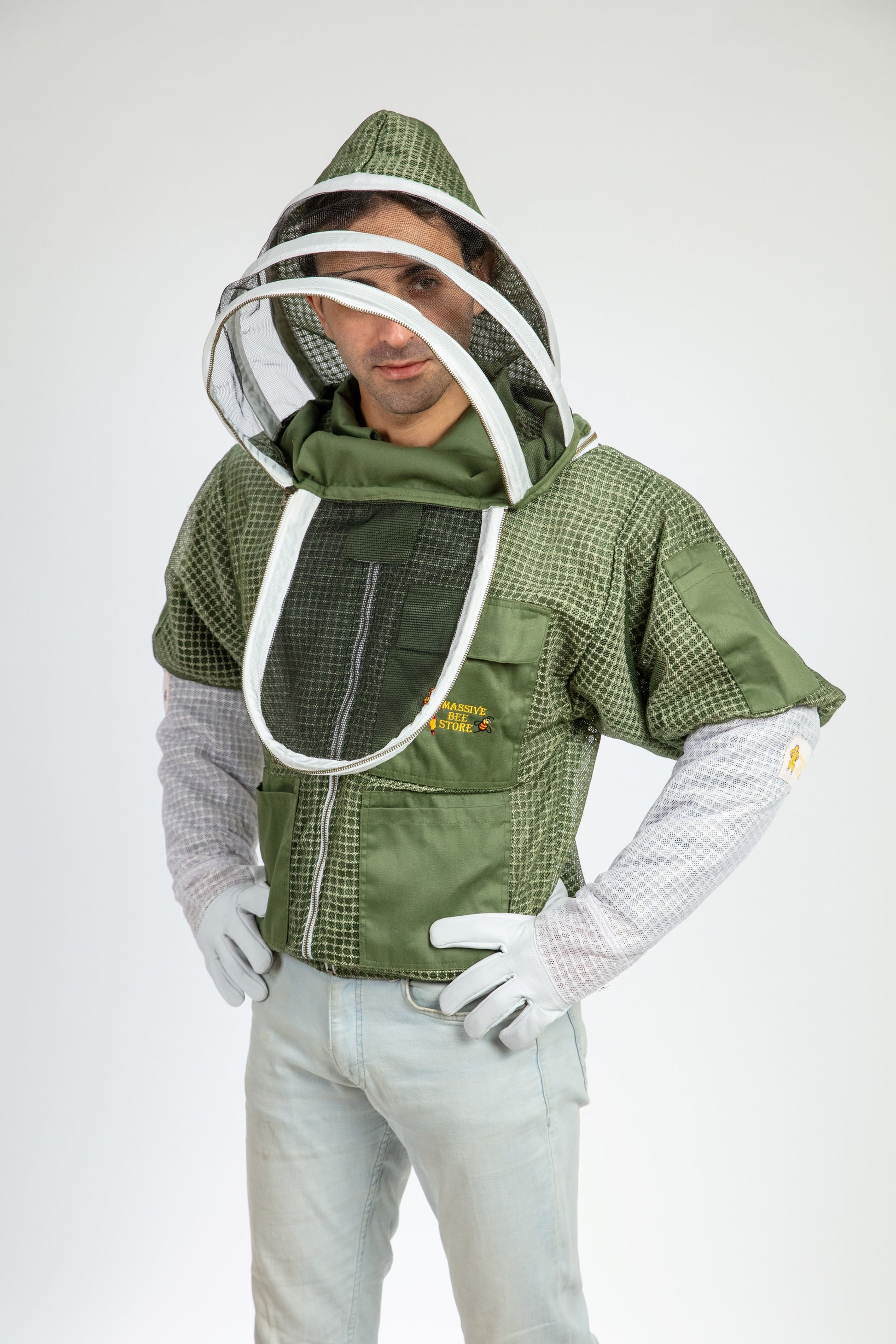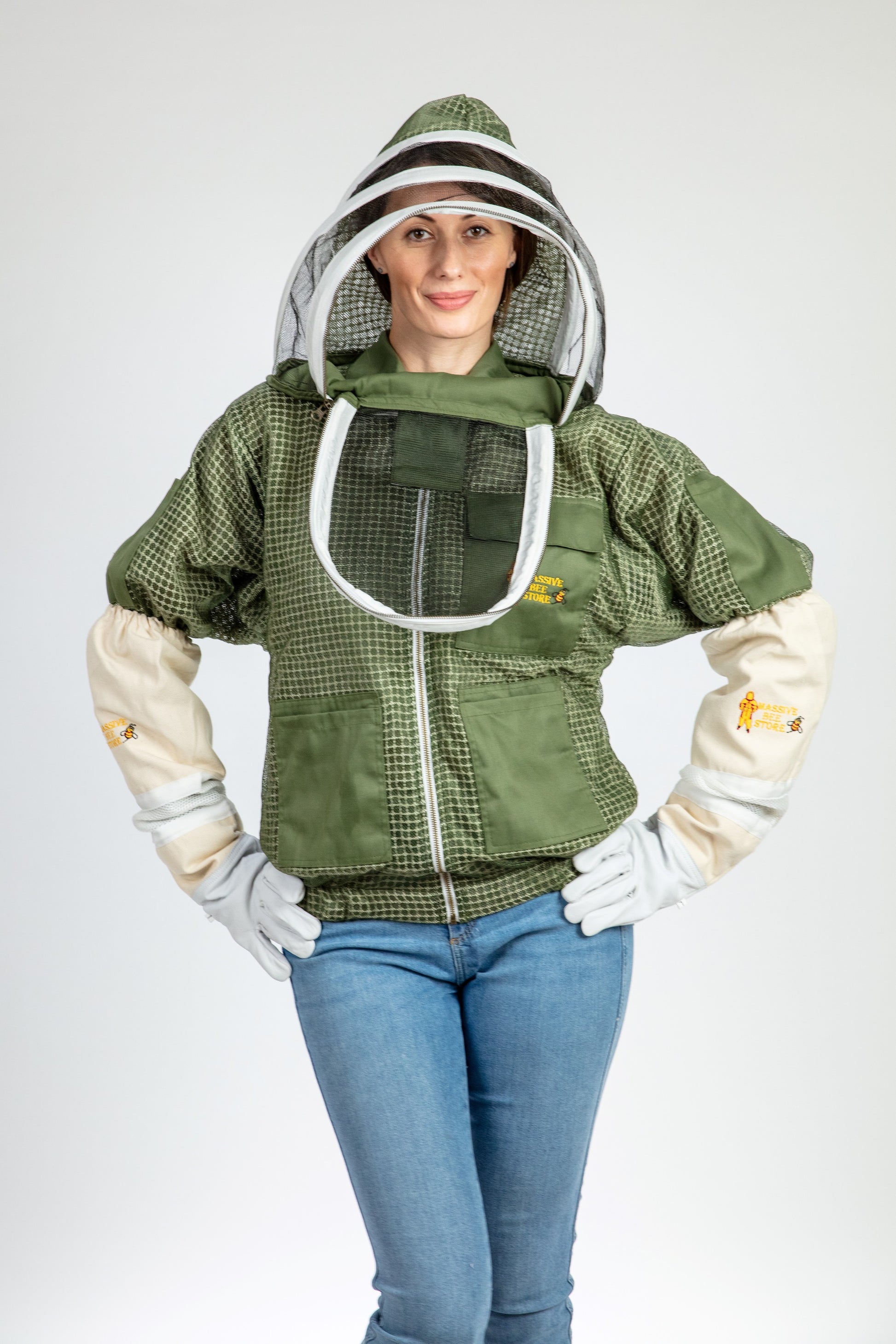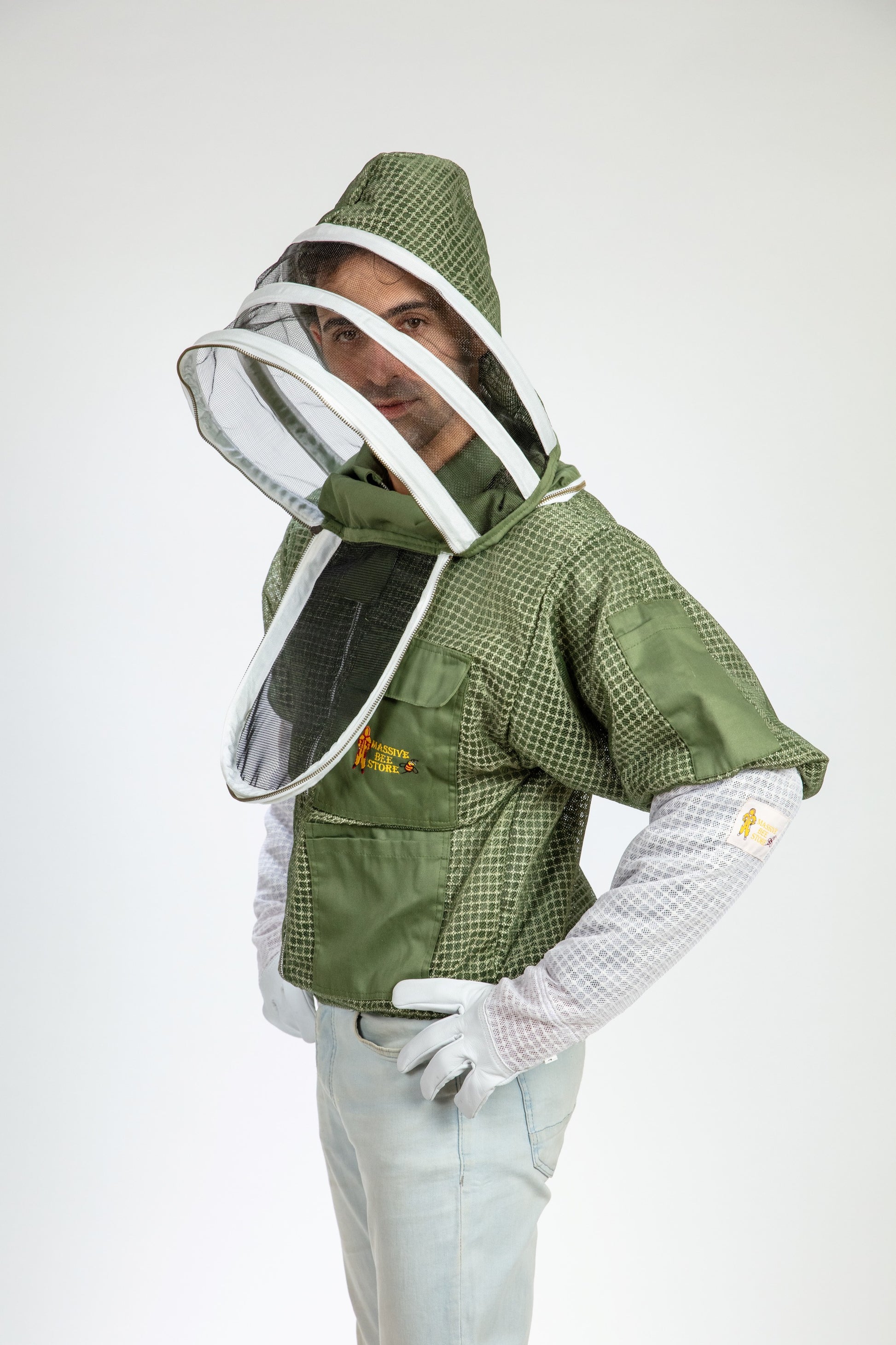 Olive Green Beekeeping Ventilated Jacket with Fencing Veil