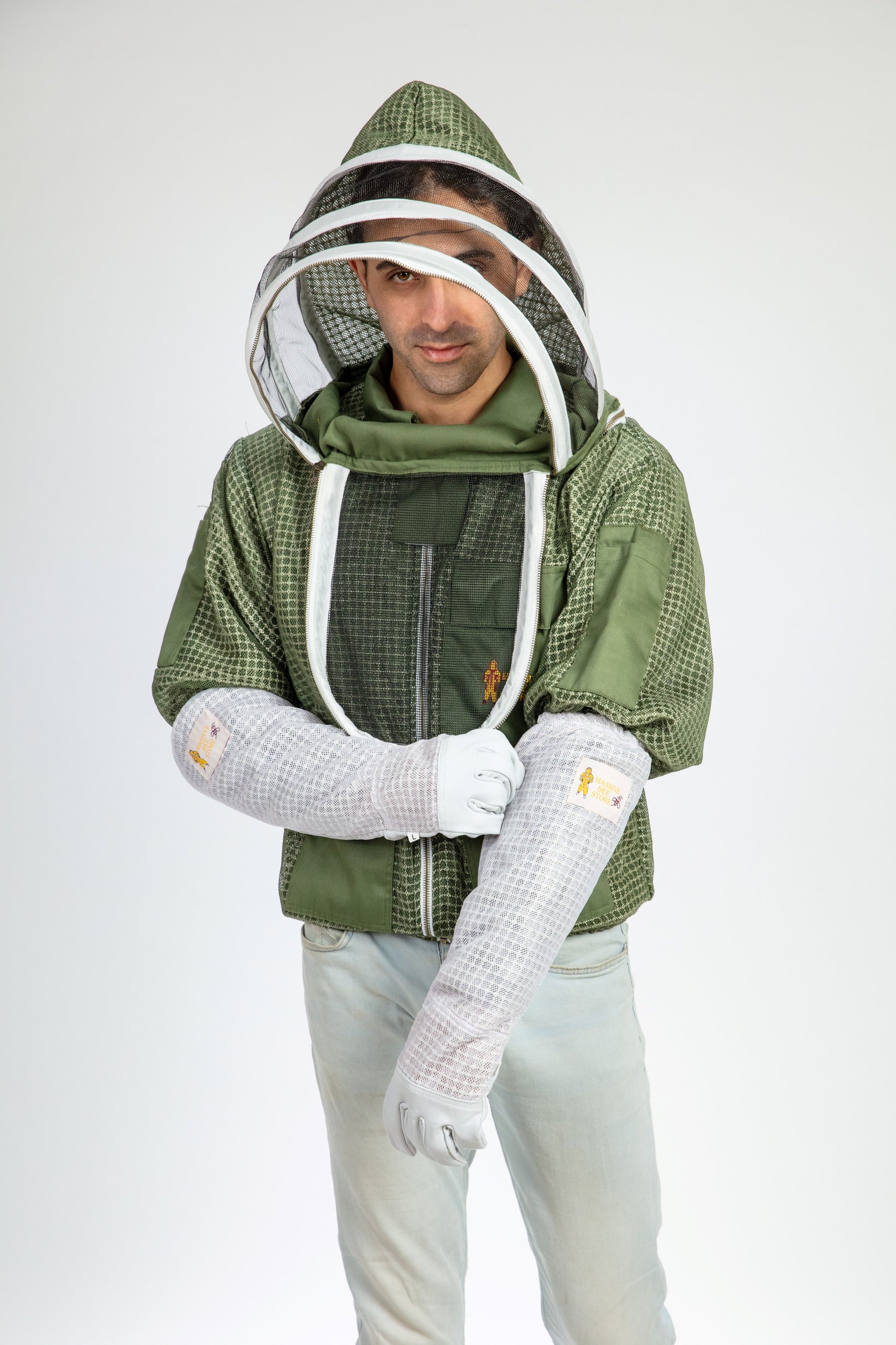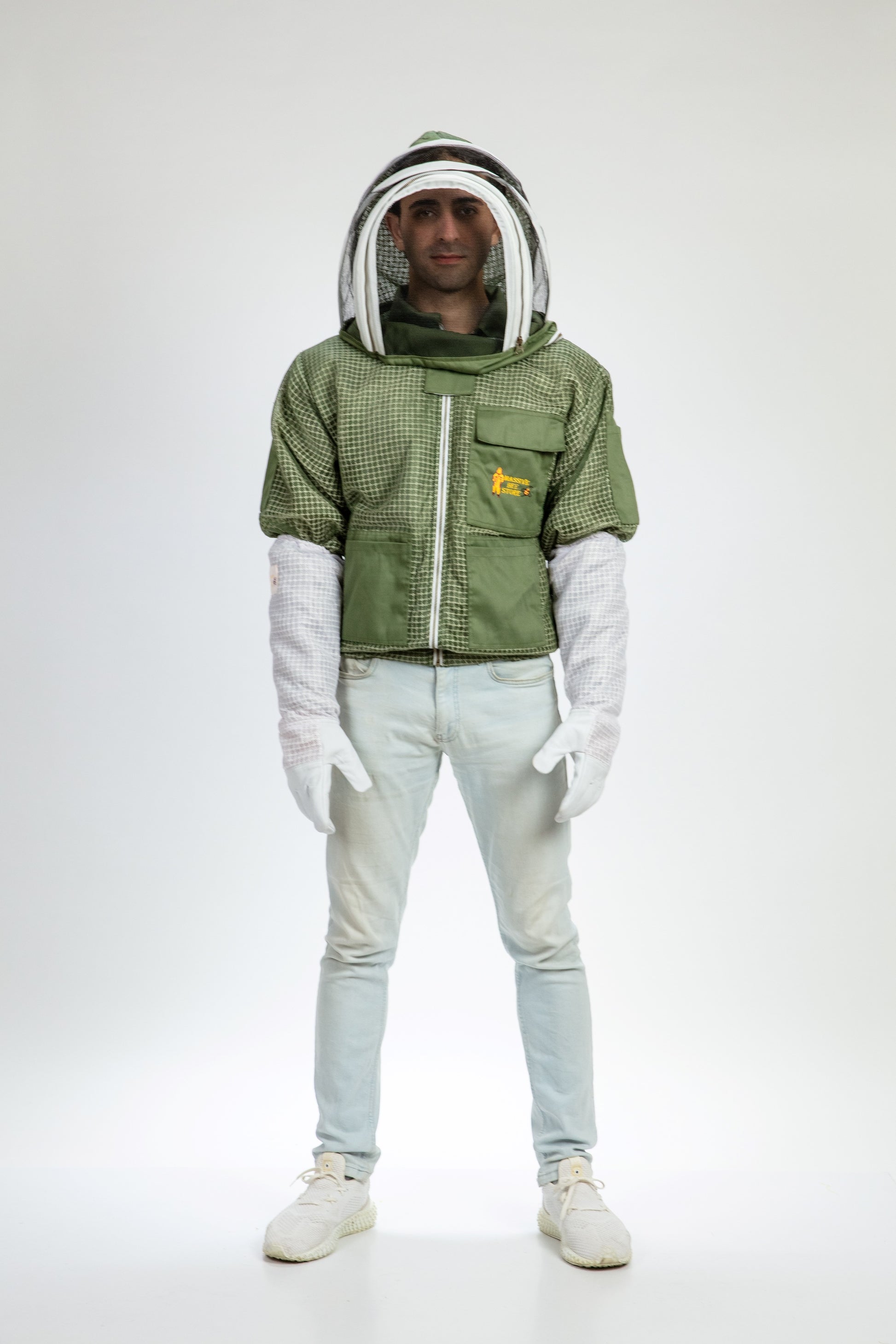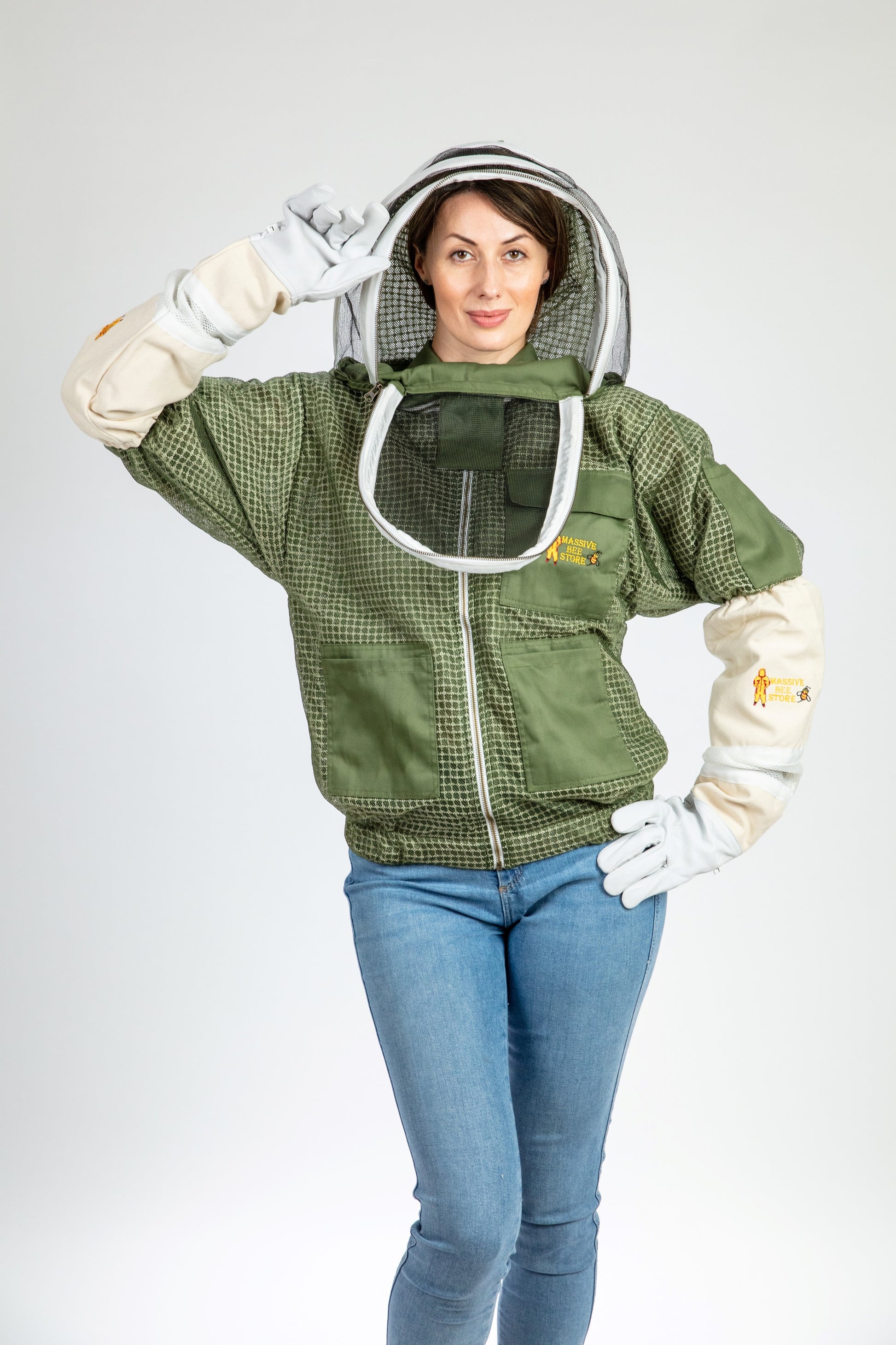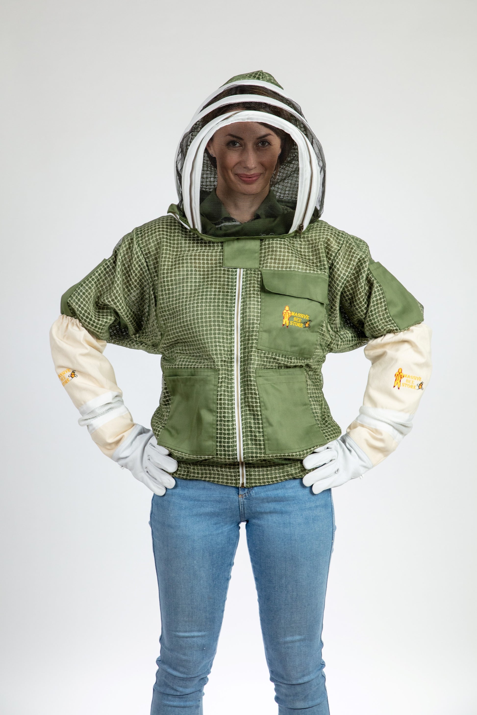 Olive Green Beekeeping Ventilated Jacket with Fencing Veil