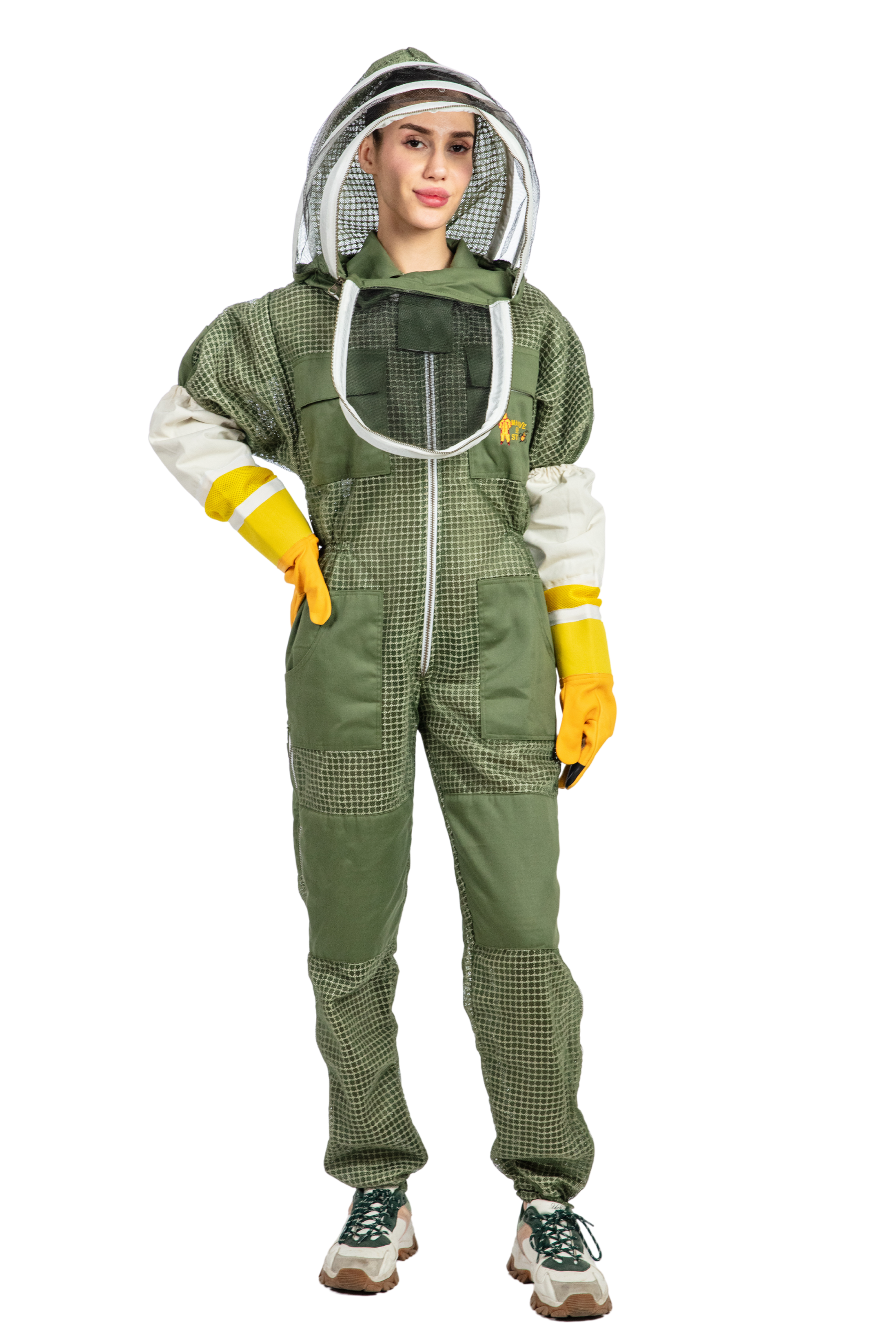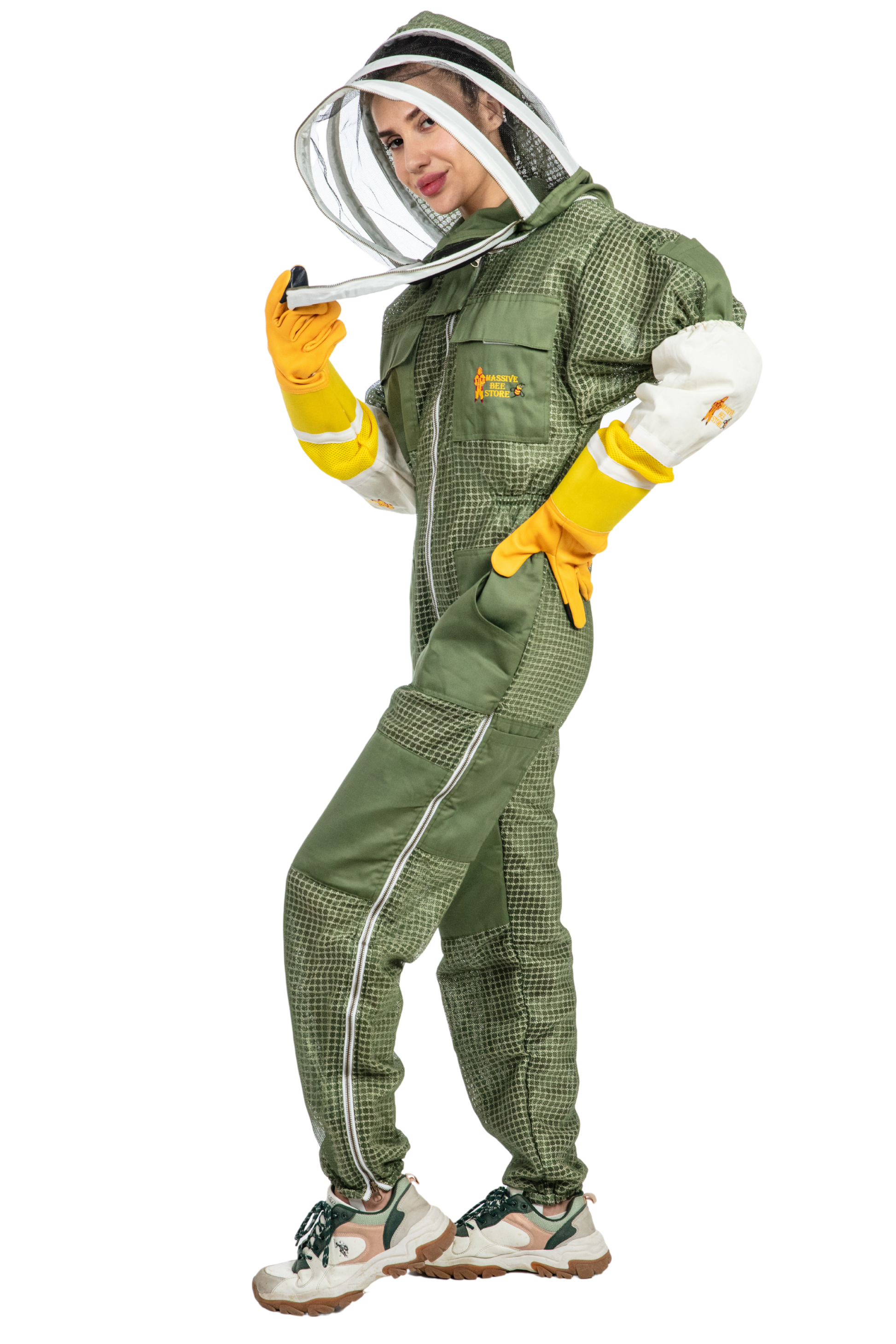 Olive Green Beekeeping Ventilated Suit with Fencing Veil