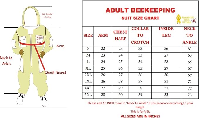 Two chest and waist pockets with flap Velcro closures, heavy duty zipper at the chest and neck as self-supporting collapsible veil. Designed for comfort and sting protection, the professional Bee Suit is tailored specially for beekeeping and bee control.