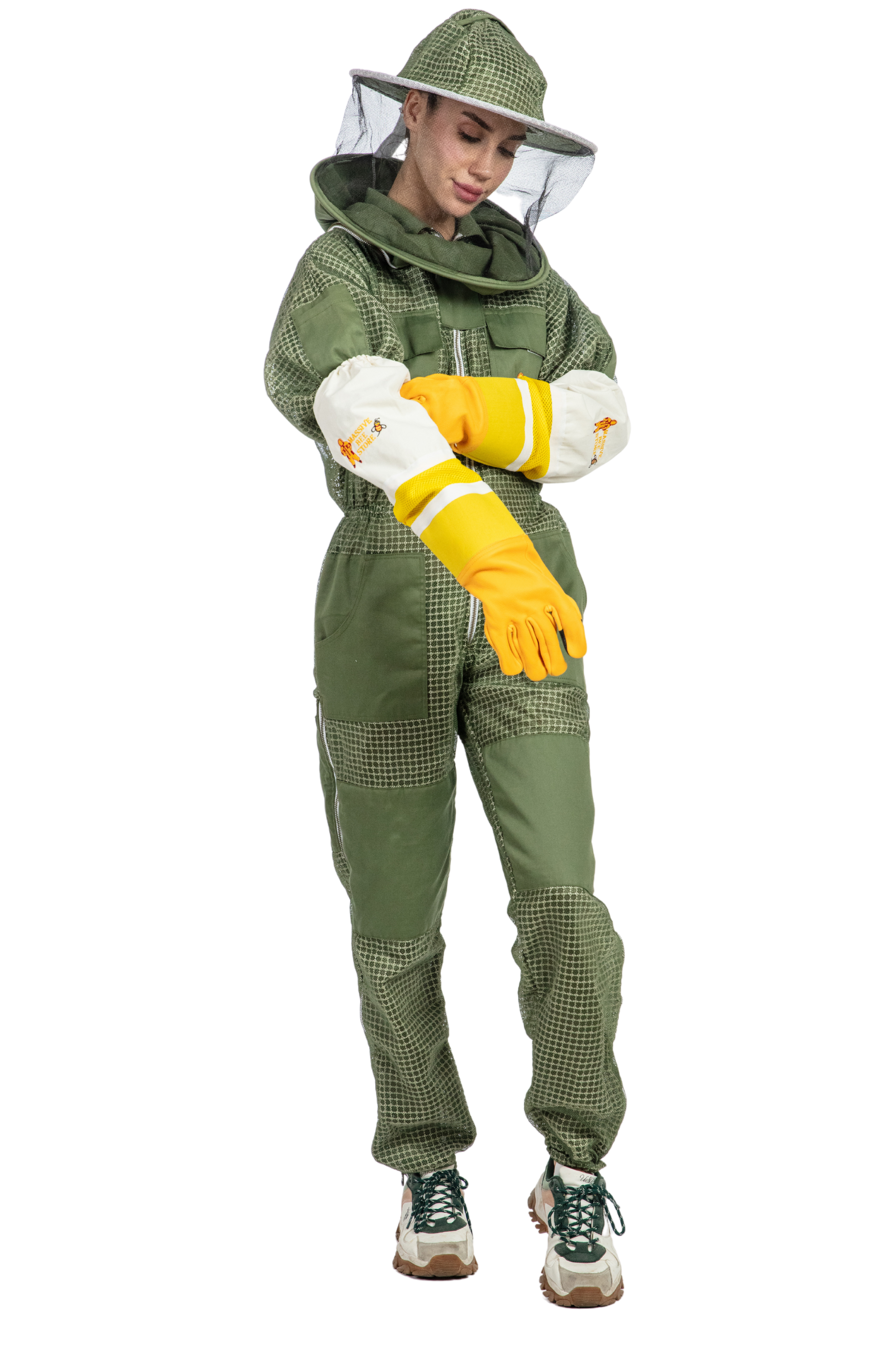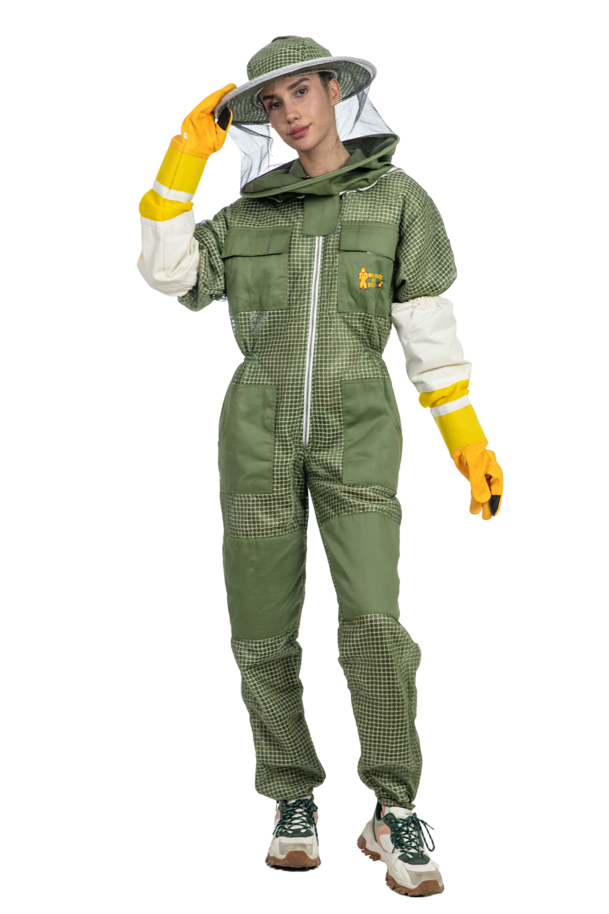 Olive Green Beekeeping Ventilated Suit with Round Veil