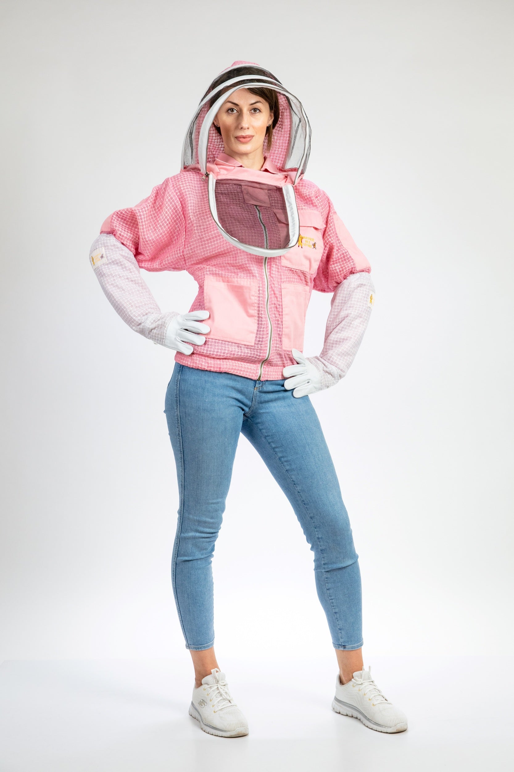 Pink Beekeeping Ventilated Jacket with Fencing Veil