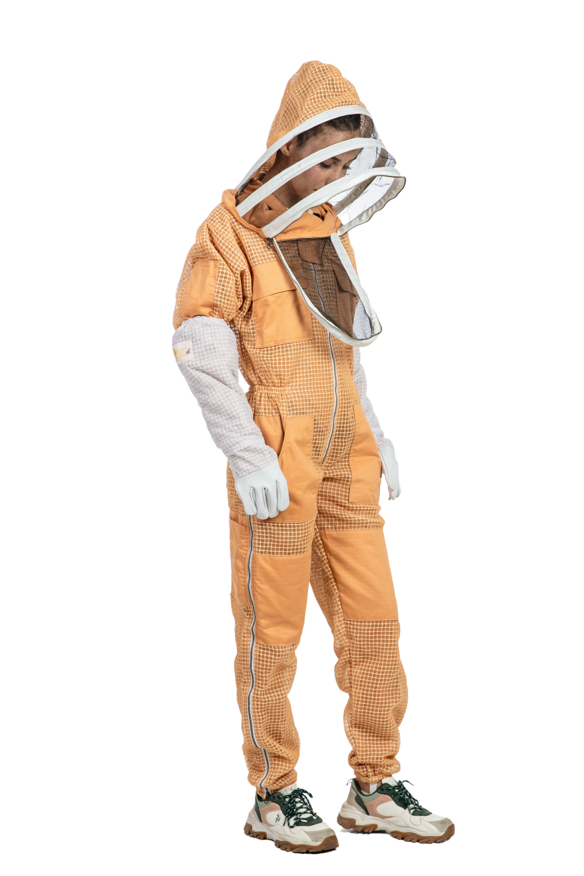 Unique protective Beekeeping Gear is made of finest high quality 3-Layers of fabric. The inner and outer Layers are made of Polyester Cotton mesh. EVA mesh fabric is sandwiched between Polyester cotton Mesh. Through this inner layer overall thickness of the beekeeping Suit is 4 mm. The thicknesses of the Suit keep bees well above your skin and have less chance of a successful sting. Although, the Jacket is made of permeable materials so it provides a high degree of ventilation. So, if you live in hot region where climate get very hot in the Bee season, then you really consider us.