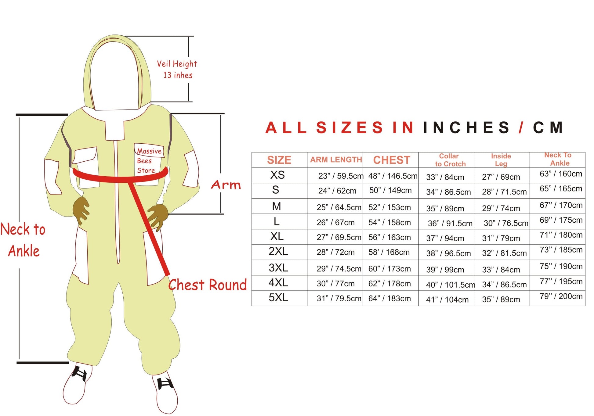 Two chest and waist pockets with flap Velcro closures, heavy duty zipper at the chest and neck as self-supporting collapsible veil. Designed for comfort and sting protection, the professional Bee Suit is tailored specially for beekeeping and bee control.