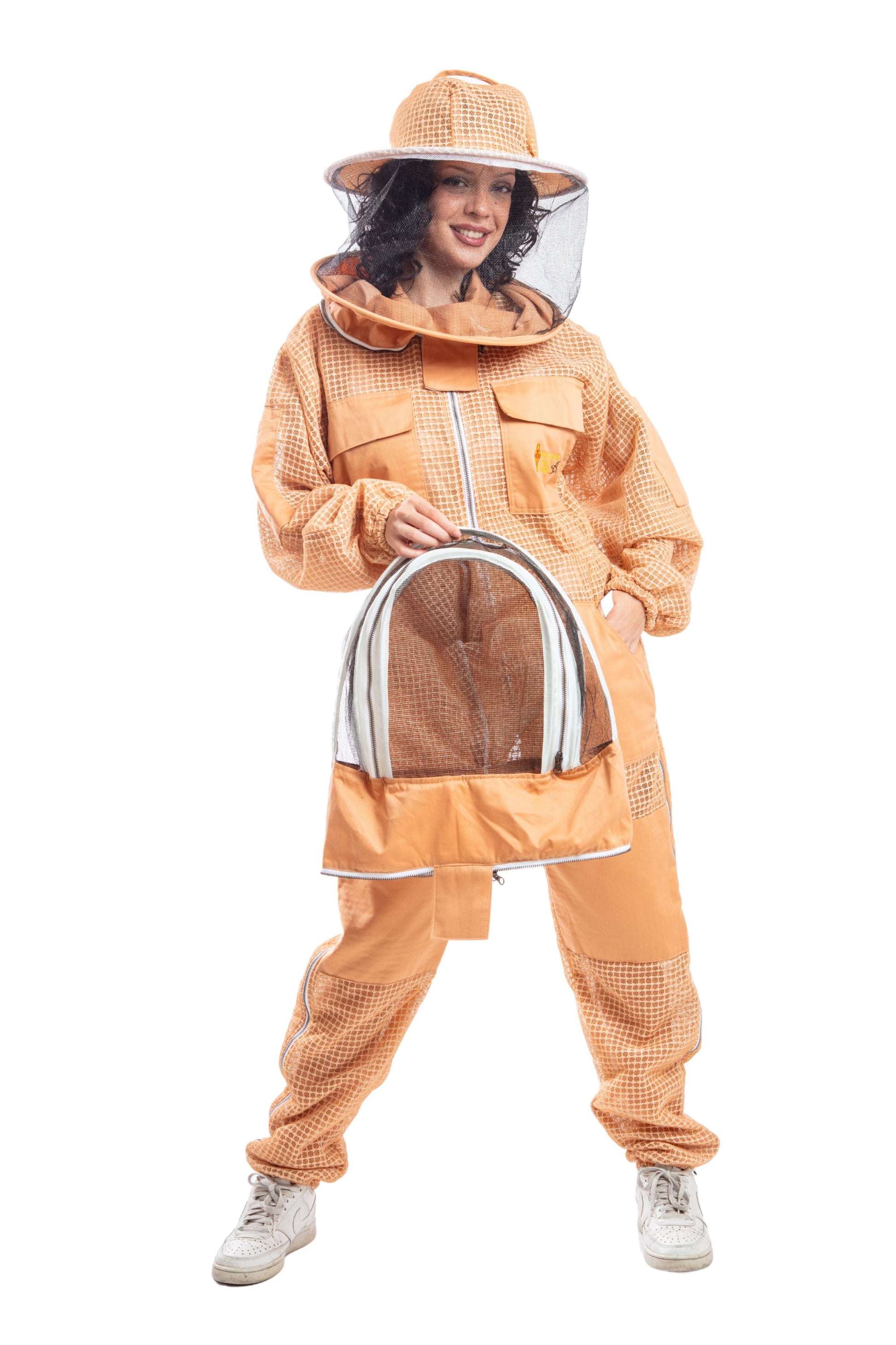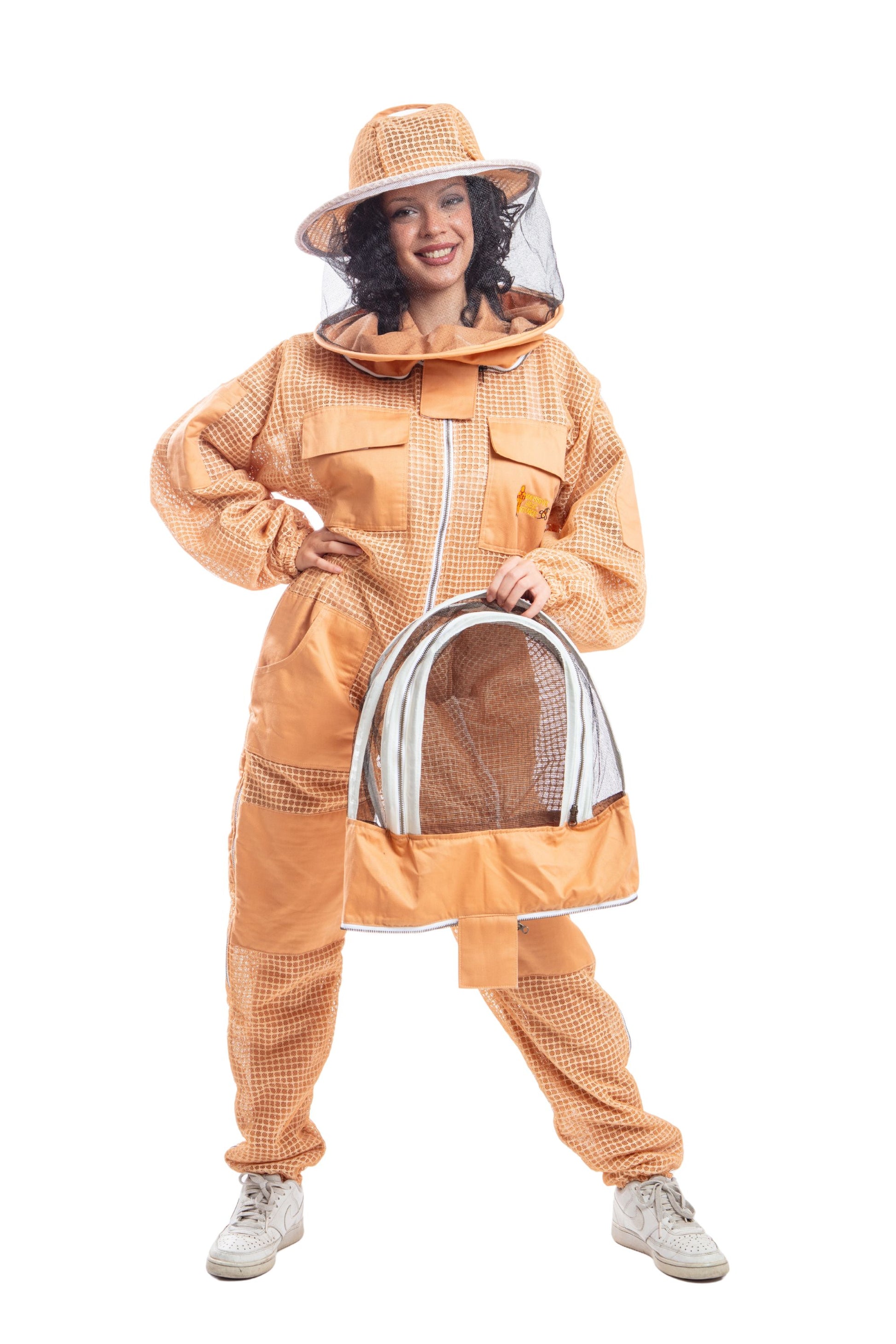* One Sand/ Peach Beekeeping Ventilated Suit With Round & Fencing Veil.