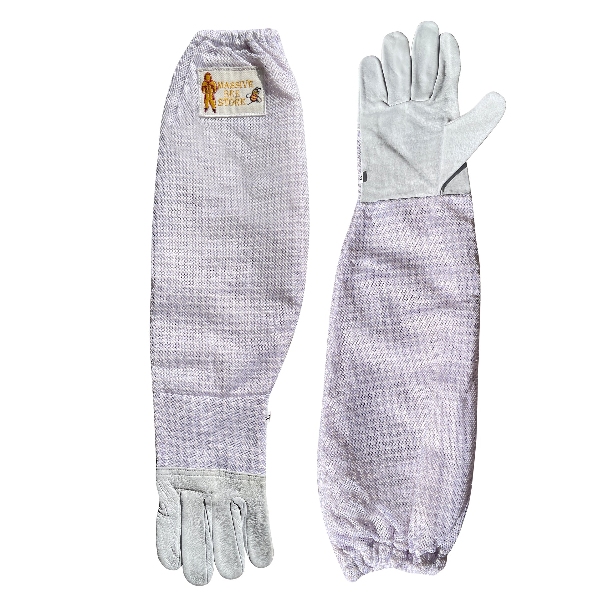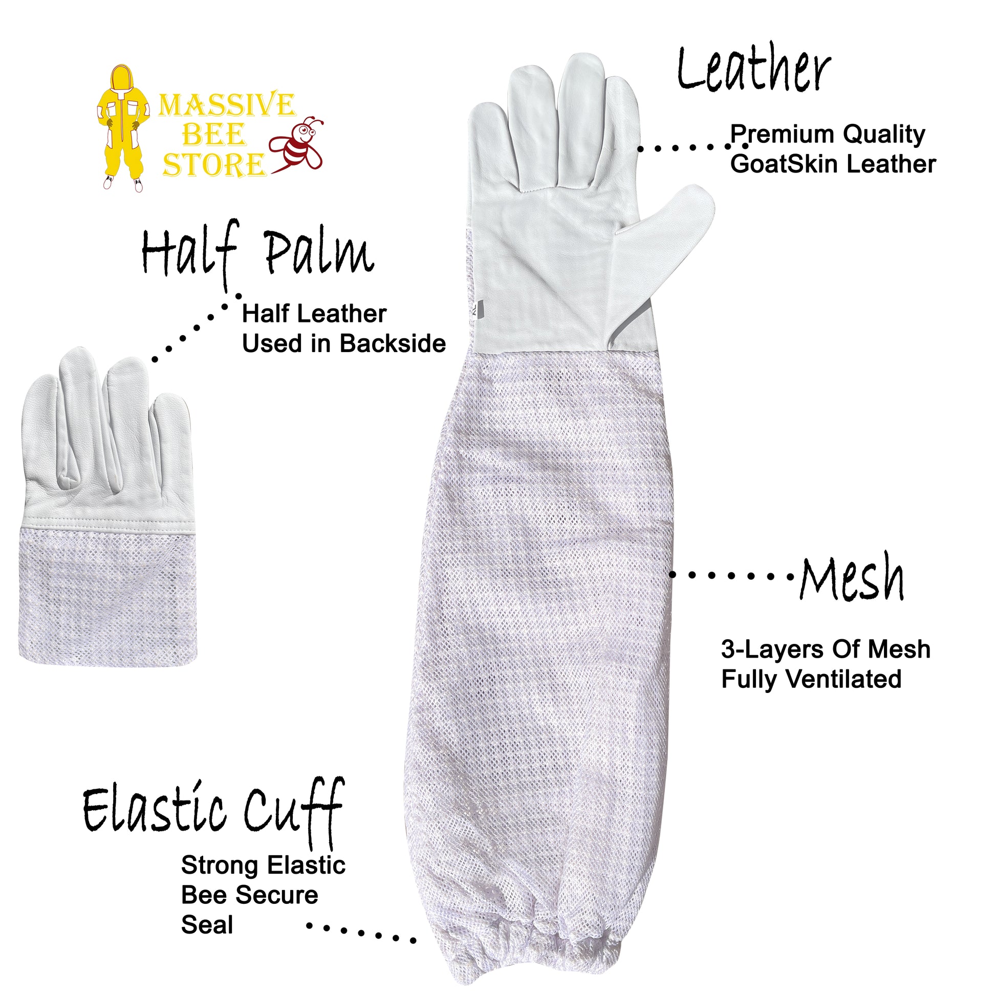 Massive Bee Store beekeeping gloves are constructed with premium Goat Skin leather hands and 3-Layer Mesh sleeves.
