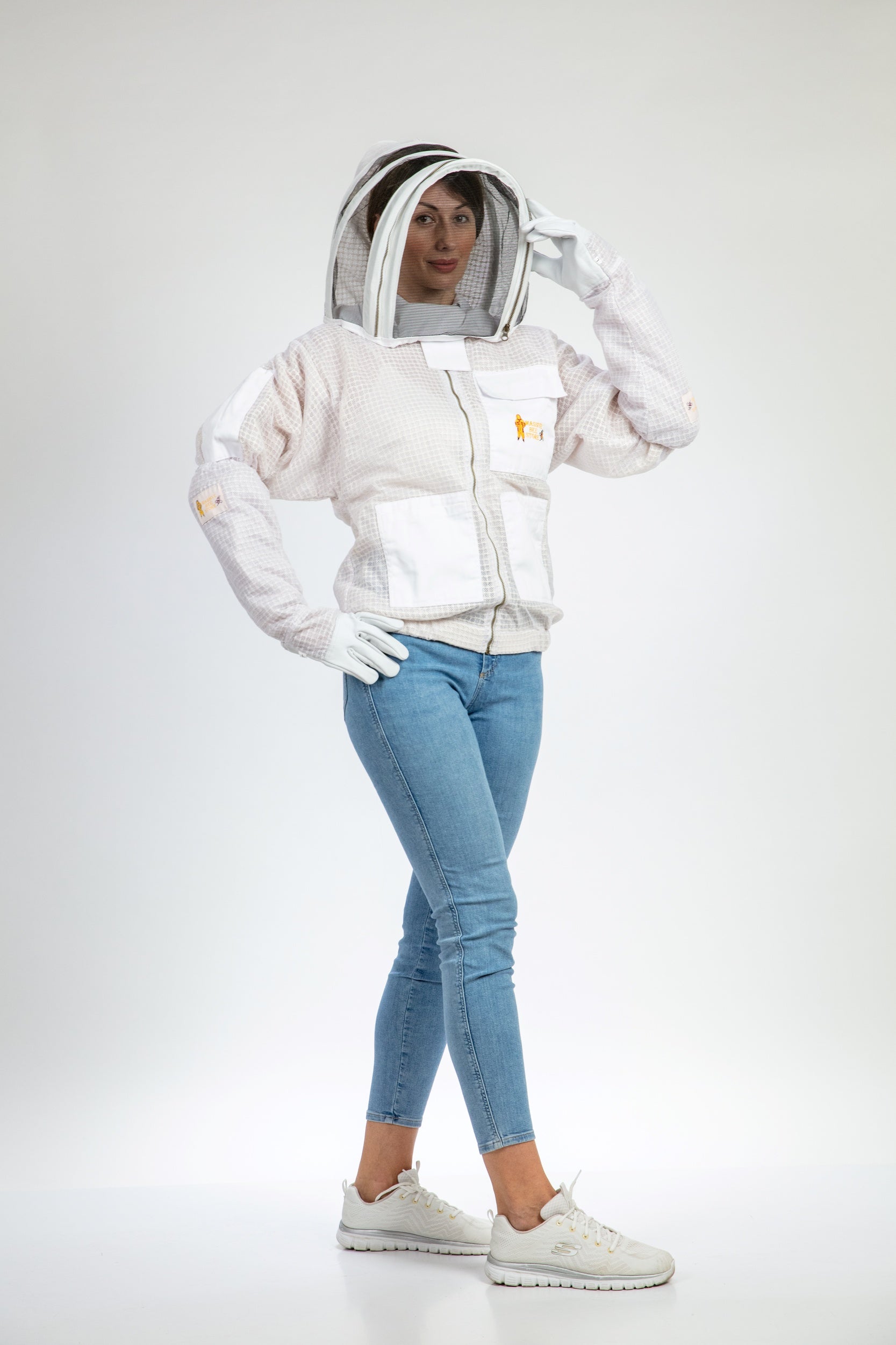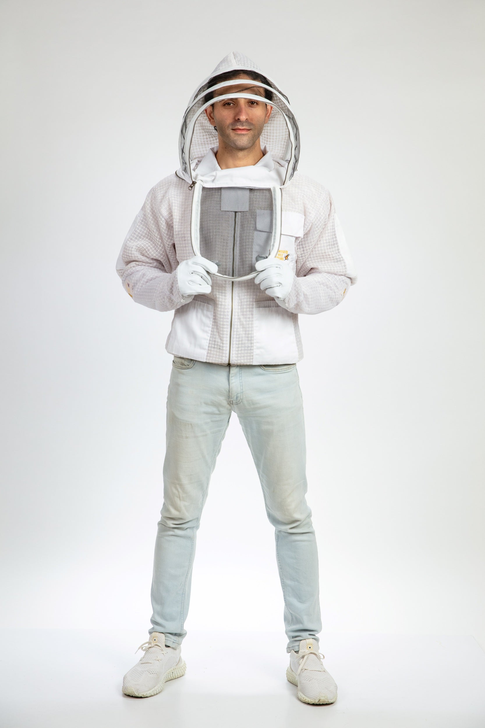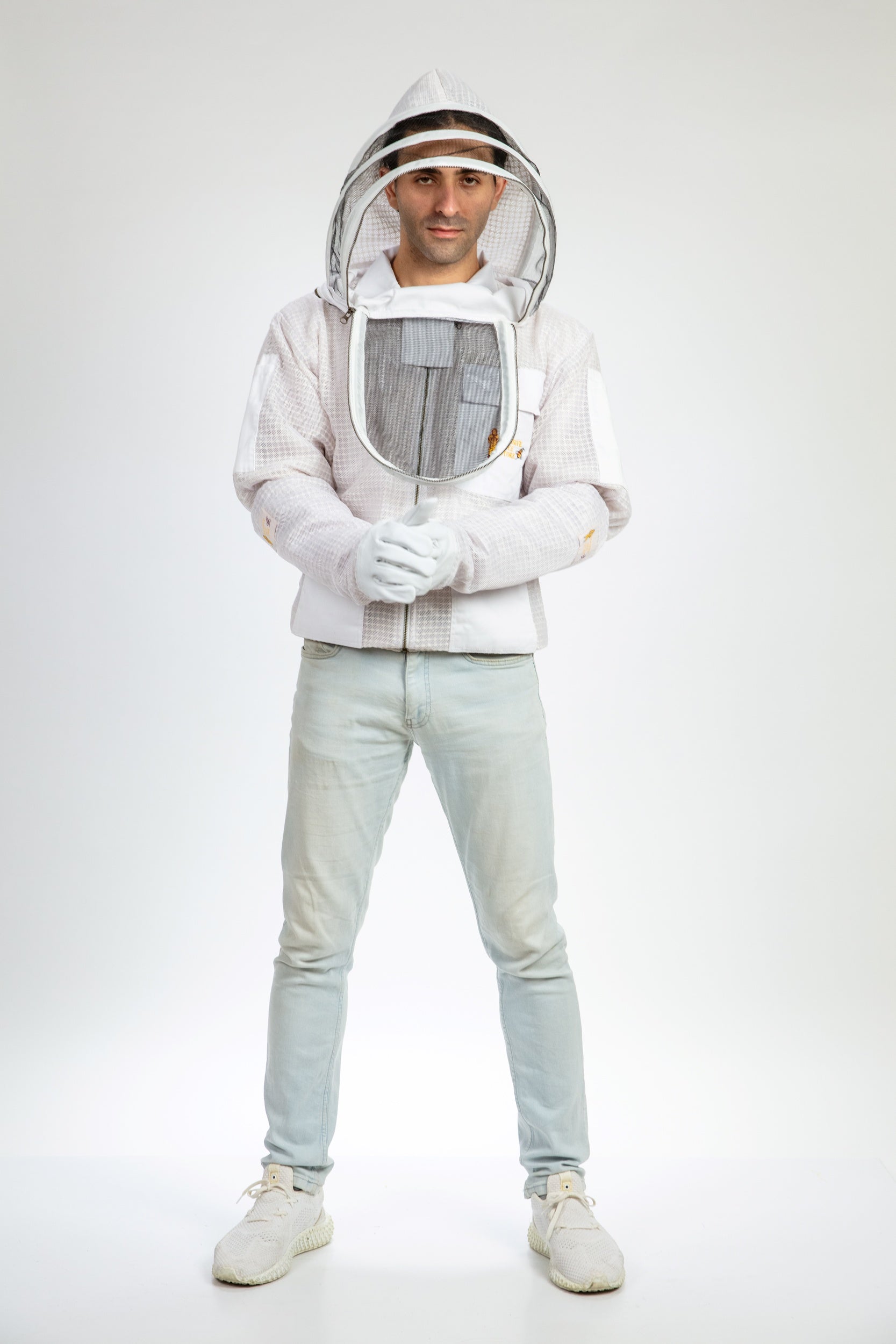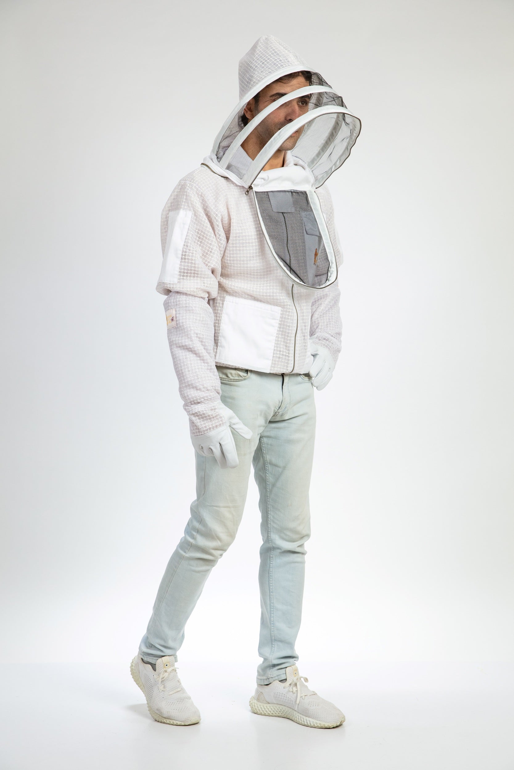 White Beekeeping Ventilated Jacket with Fencing Veil