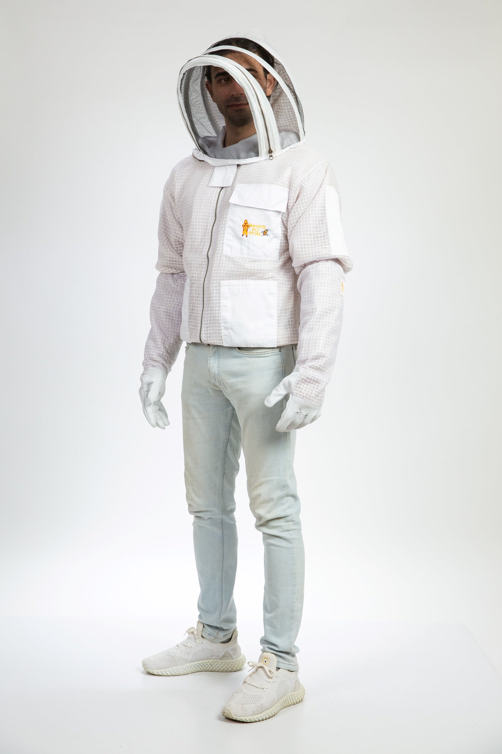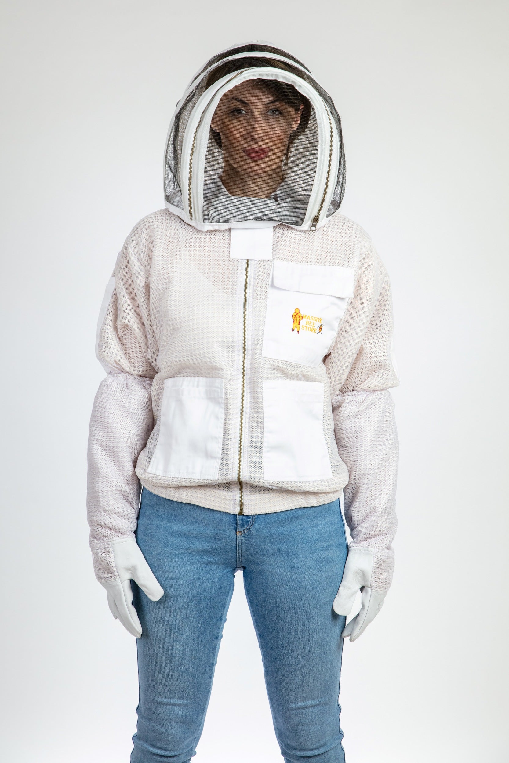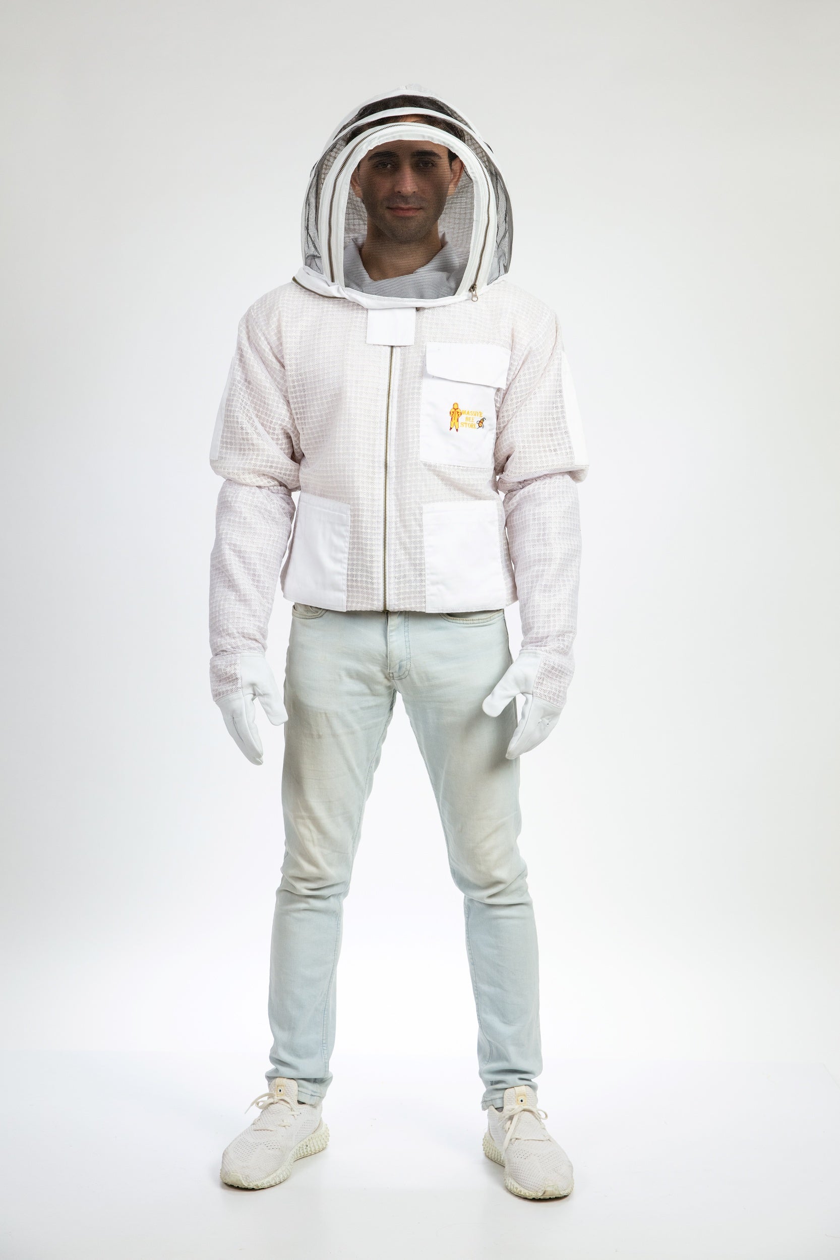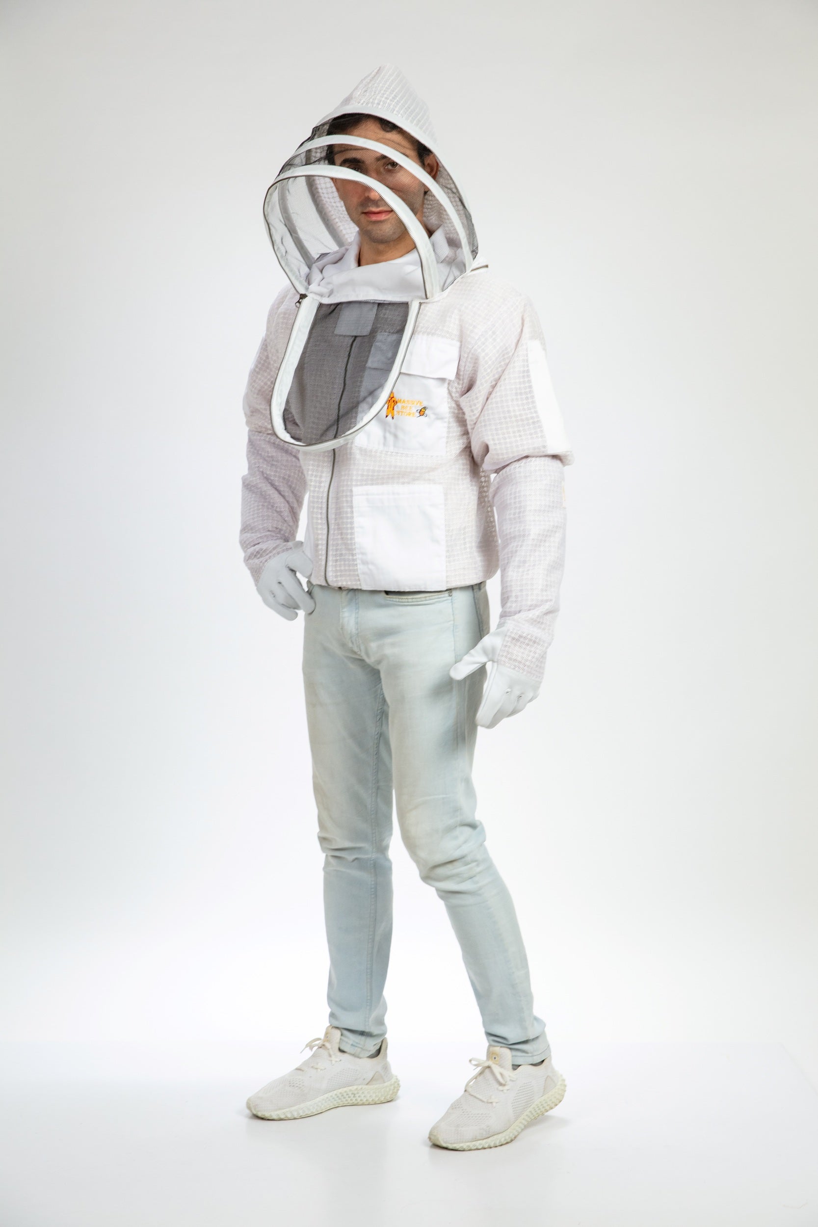 White Beekeeping Ventilated Jacket with Fencing Veil