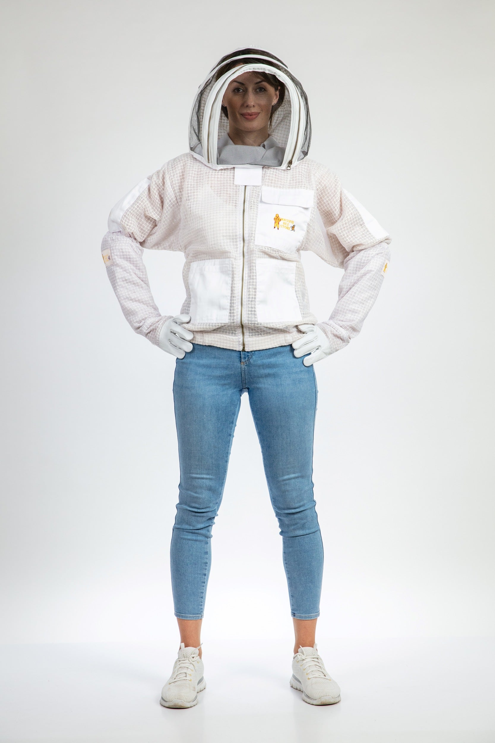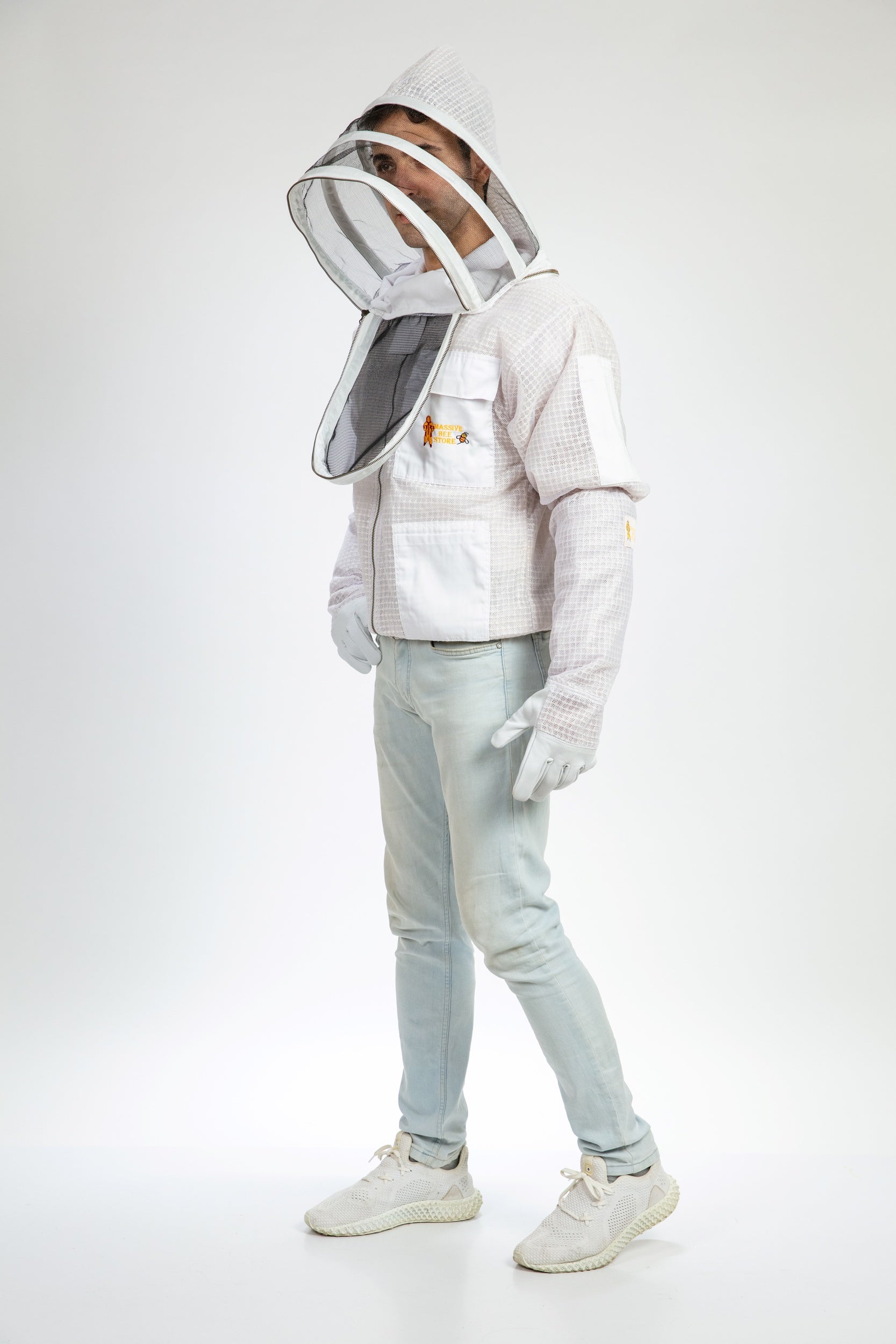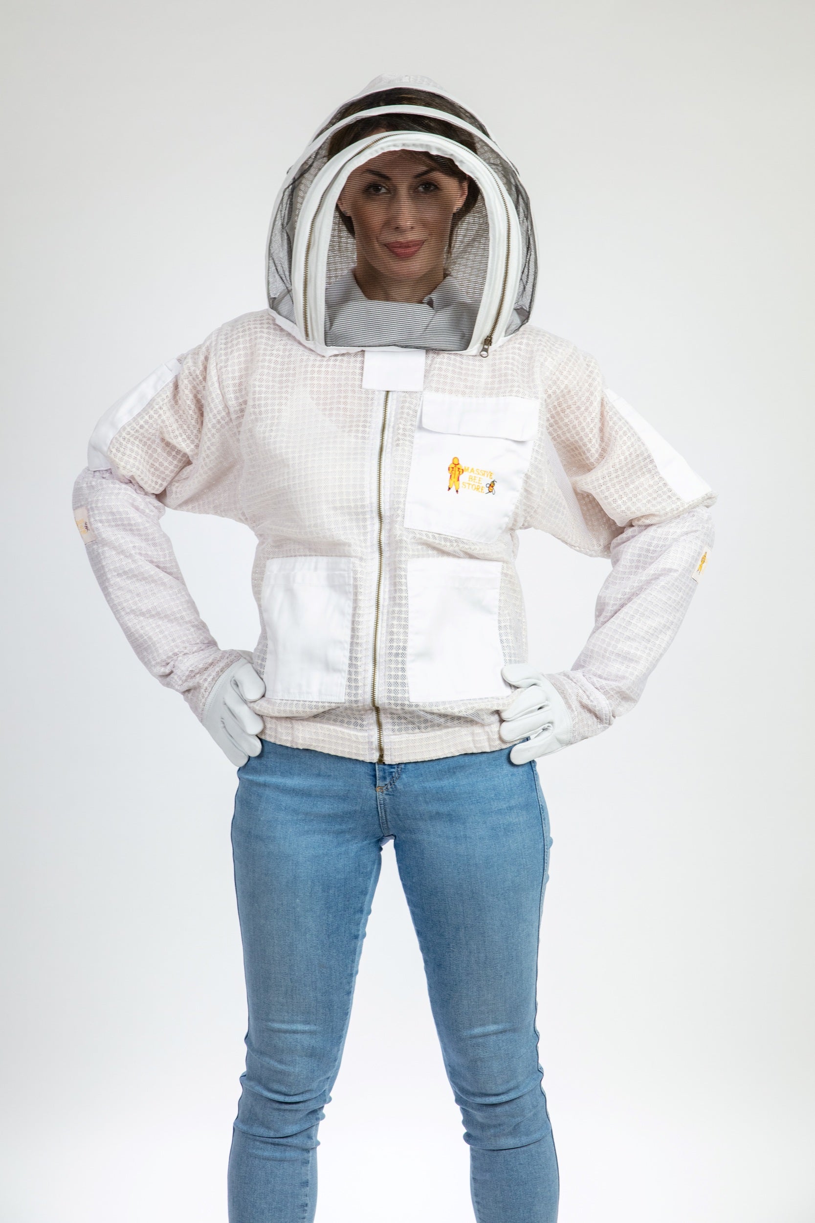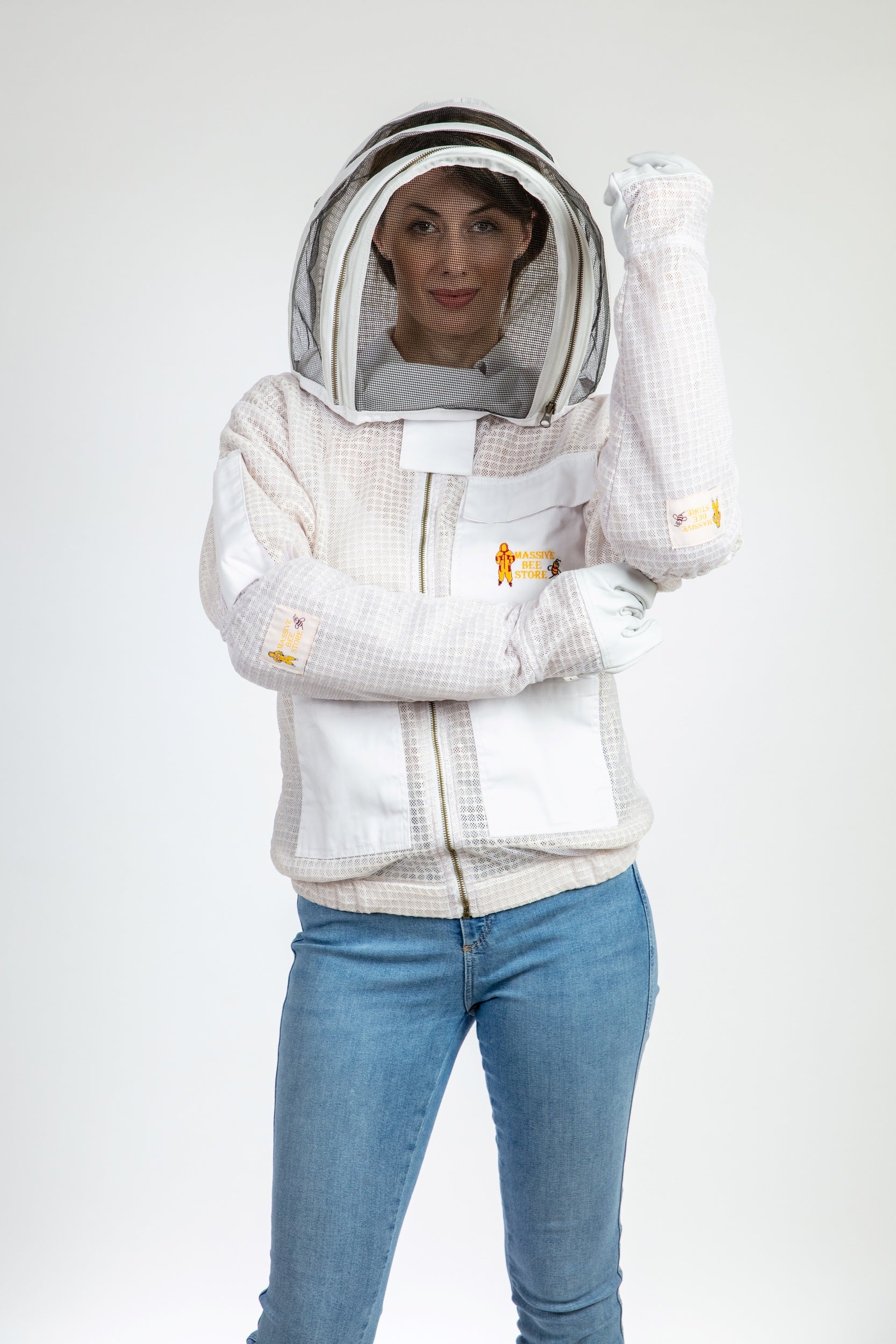 White Beekeeping Ventilated Jacket with Fencing Veil