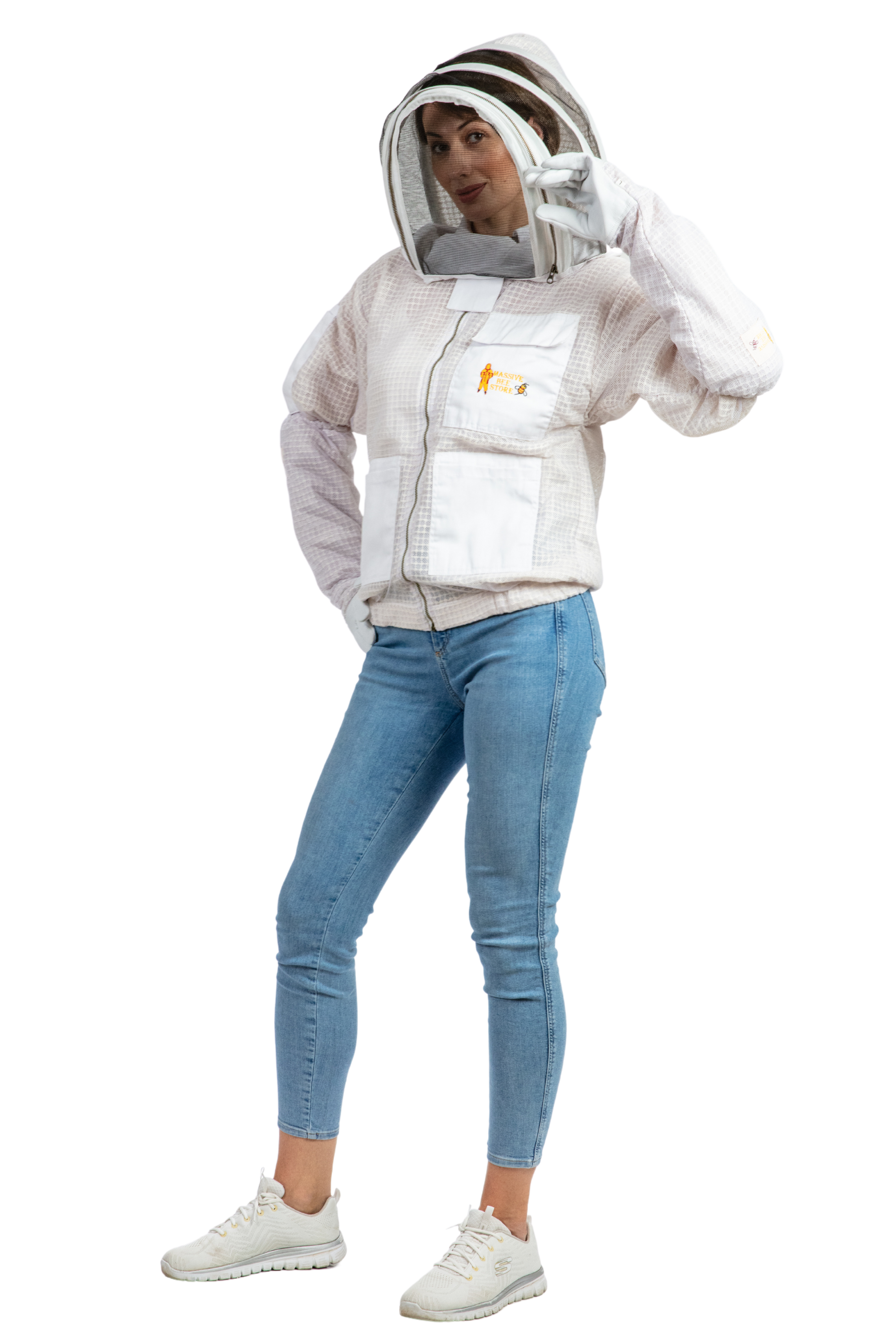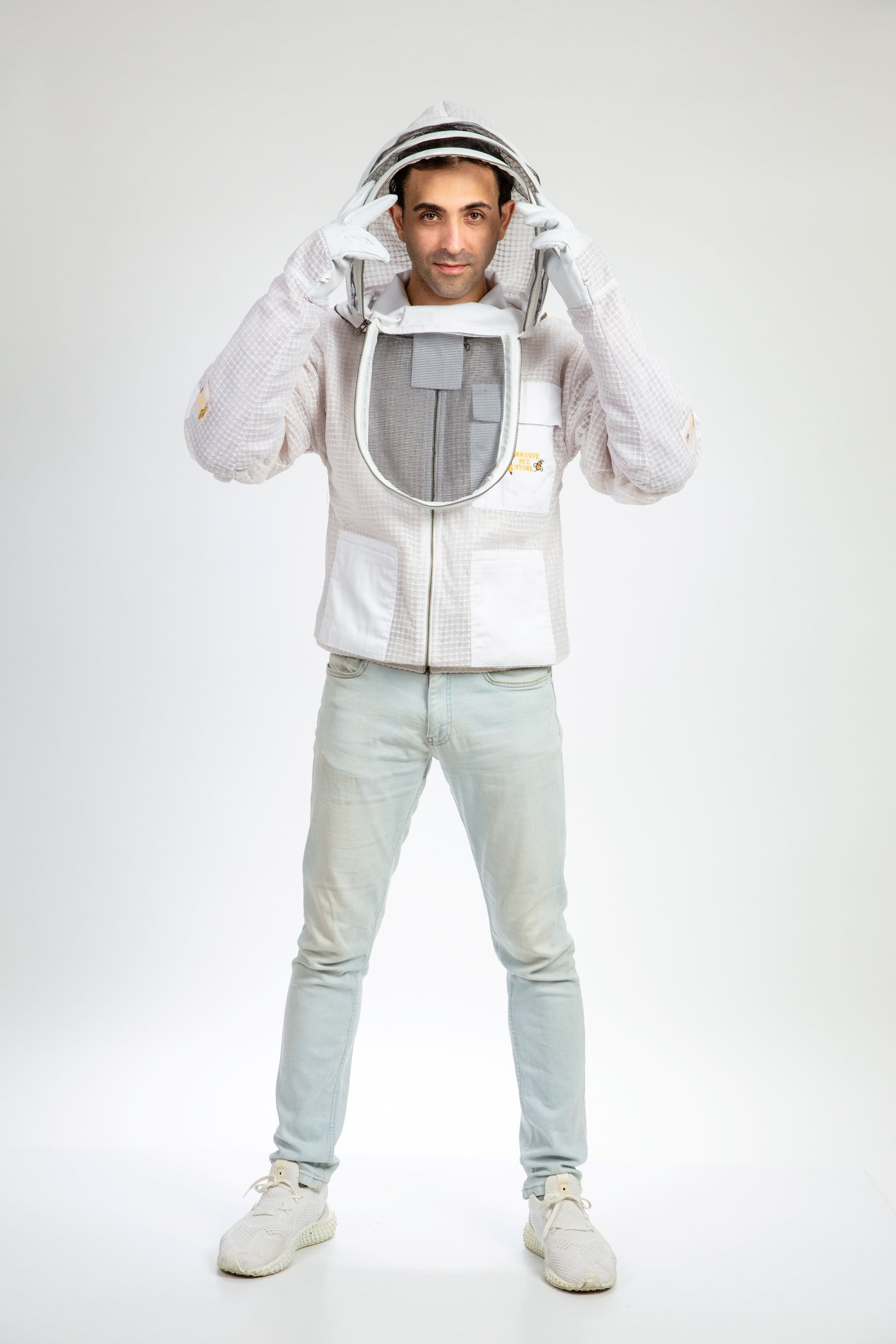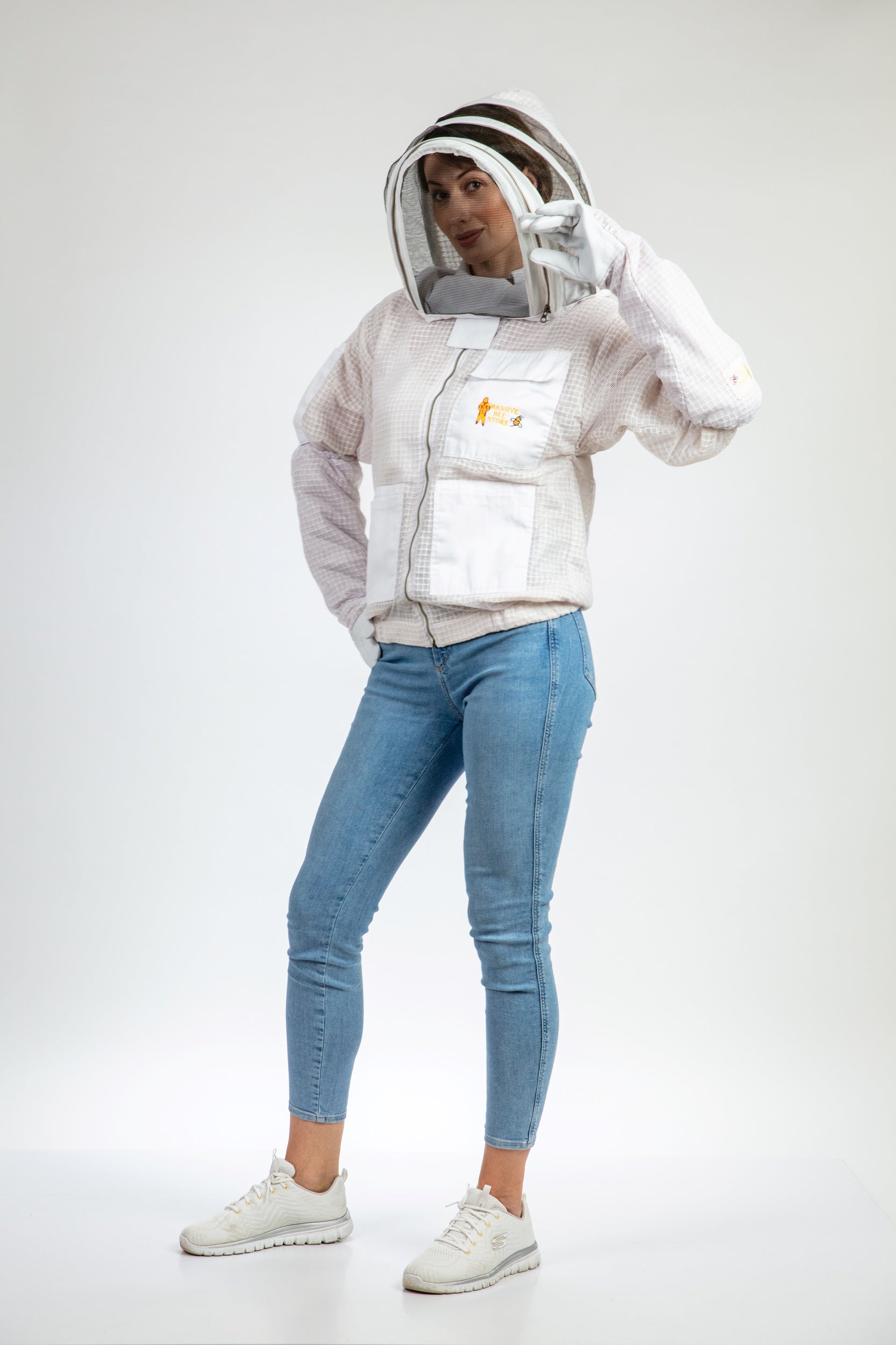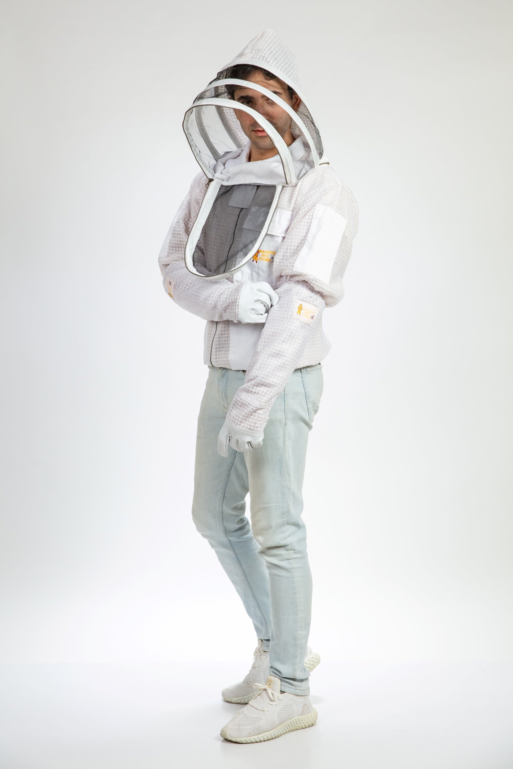 White Beekeeping Ventilated Jacket with Fencing Veil