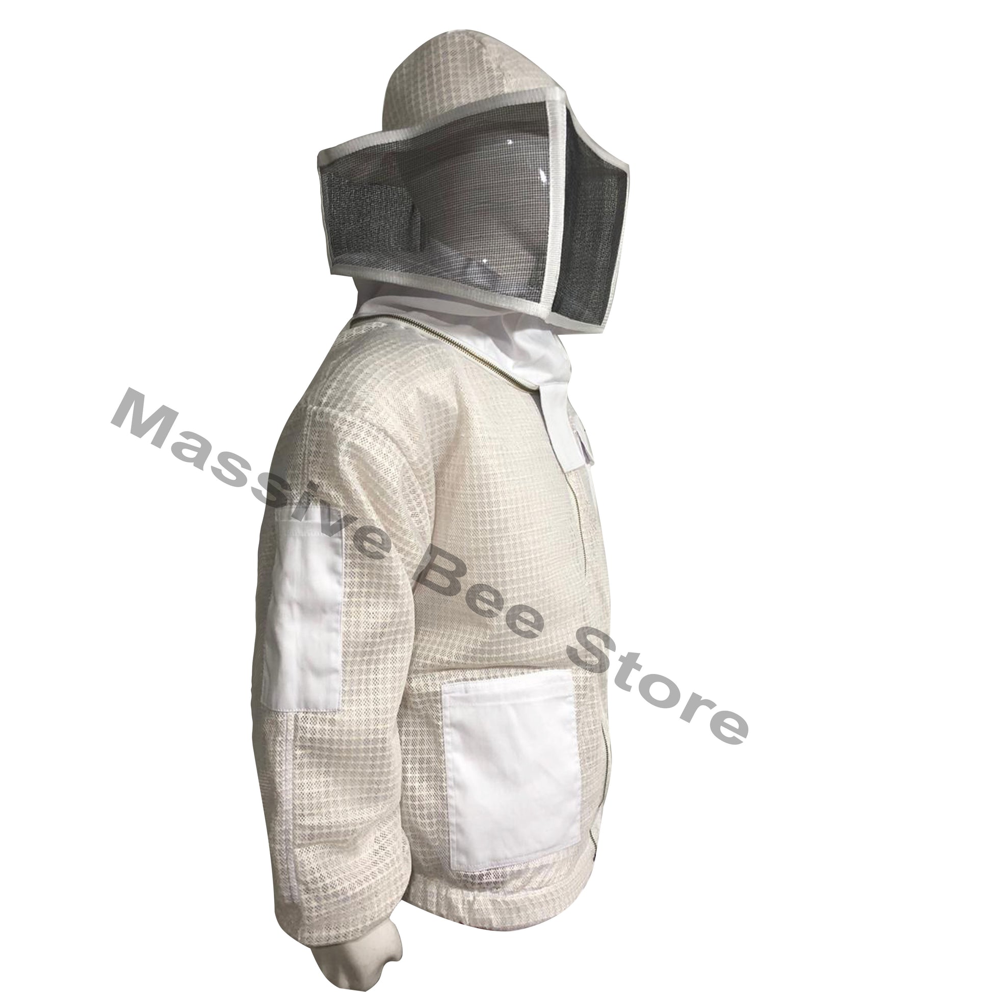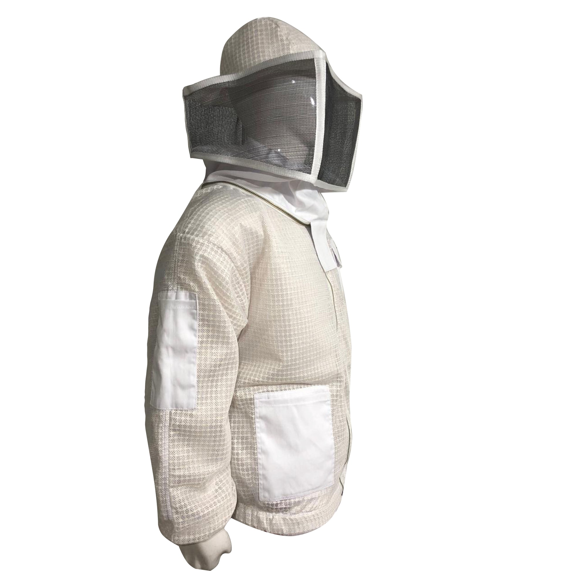 Unique protective Beekeeping Gear is made of finest high quality 3-Layers of fabric. The inner and outer Layers are made of Polyester Cotton mesh. EVA mesh fabric is sandwiched between Polyester cotton Mesh. Through this inner layer overall thickness of the beekeeping Jacket is 4 mm. The thicknesses of the Jacket keep bees well above your skin and have less chance of a successful sting. Although, the Jacket is made of permeable materials so it provides a high degree of ventilation. So, if you live in hot region where climate get very hot in the Bee season, then you really consider us.