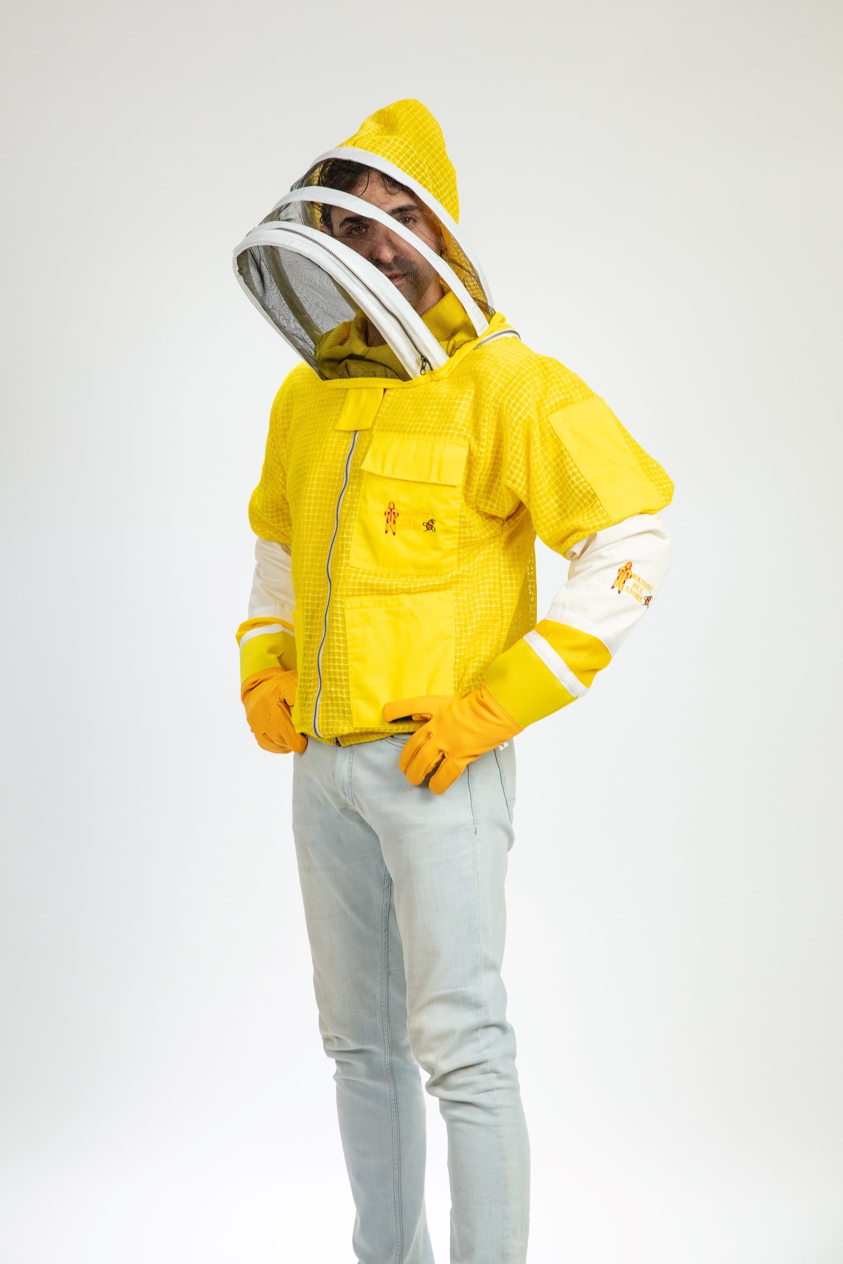 Yellow Beekeeping Ventilated Jacket with Fencing Veil