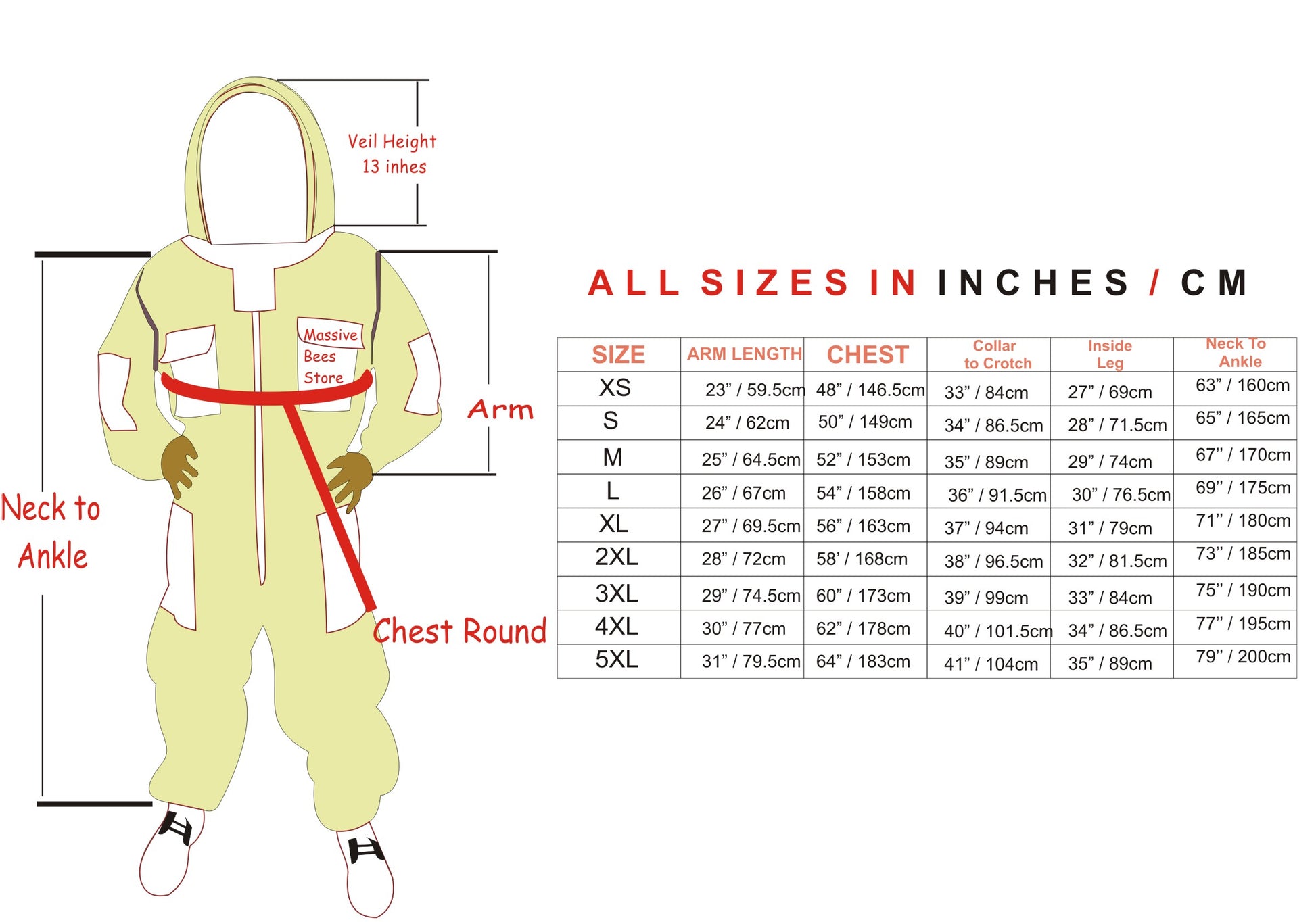 Two chest and waist pockets with flap Velcro closures, heavy duty zipper at the chest and neck as self-supporting collapsible veil. Designed for comfort and sting protection, the professional Bee Suit is tailored specially for beekeeping and bee control.