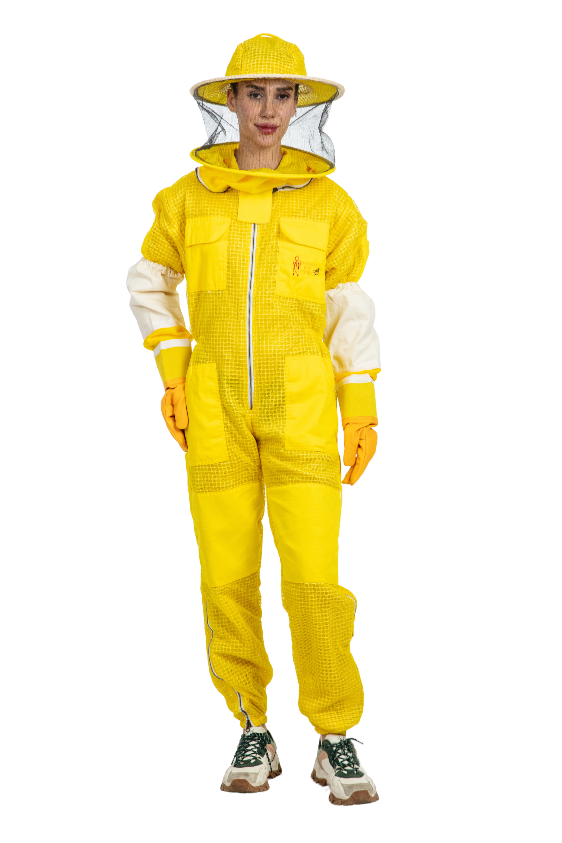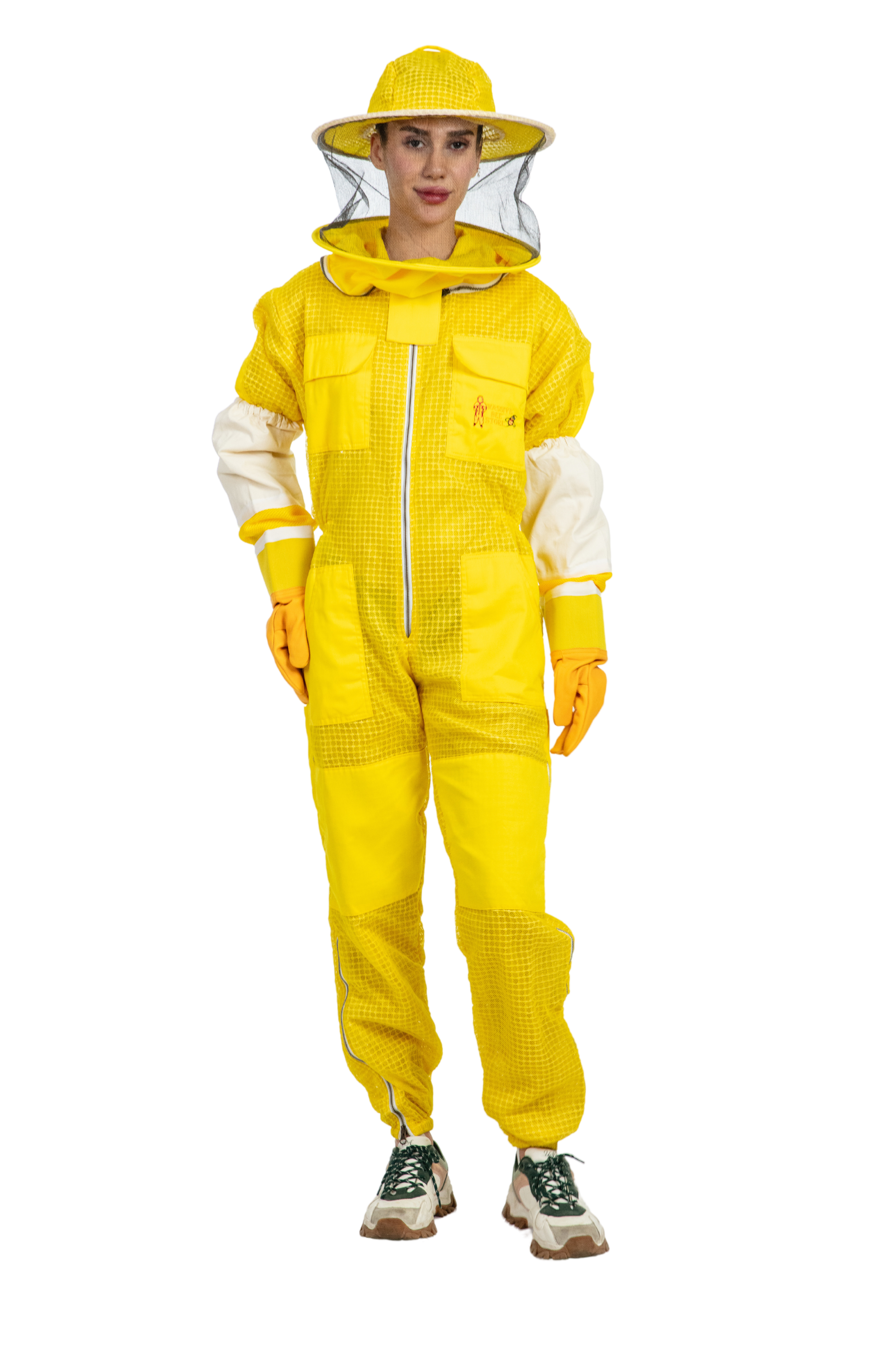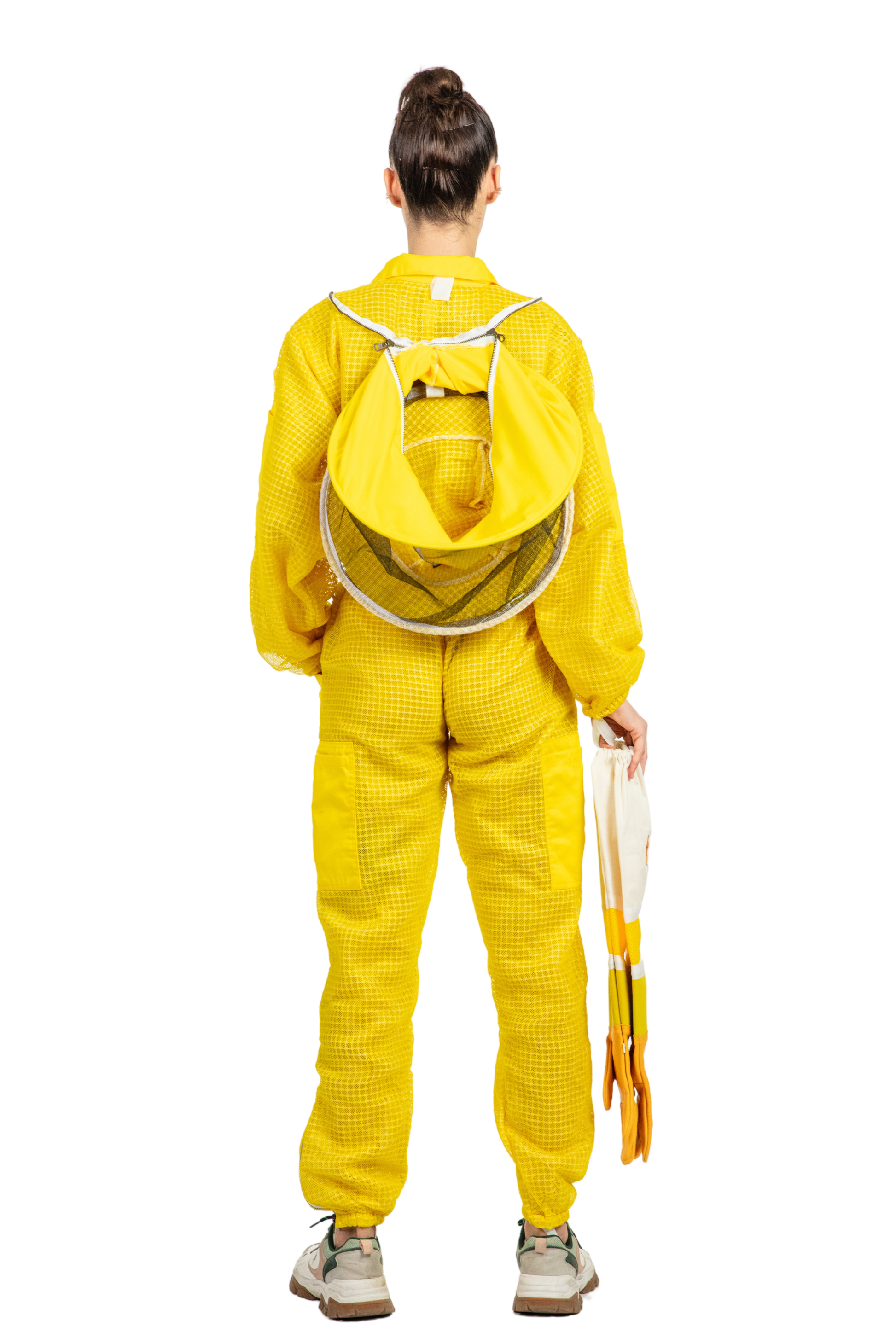 * One Yellow Beekeeping Ventilated Suit With Round Veil.