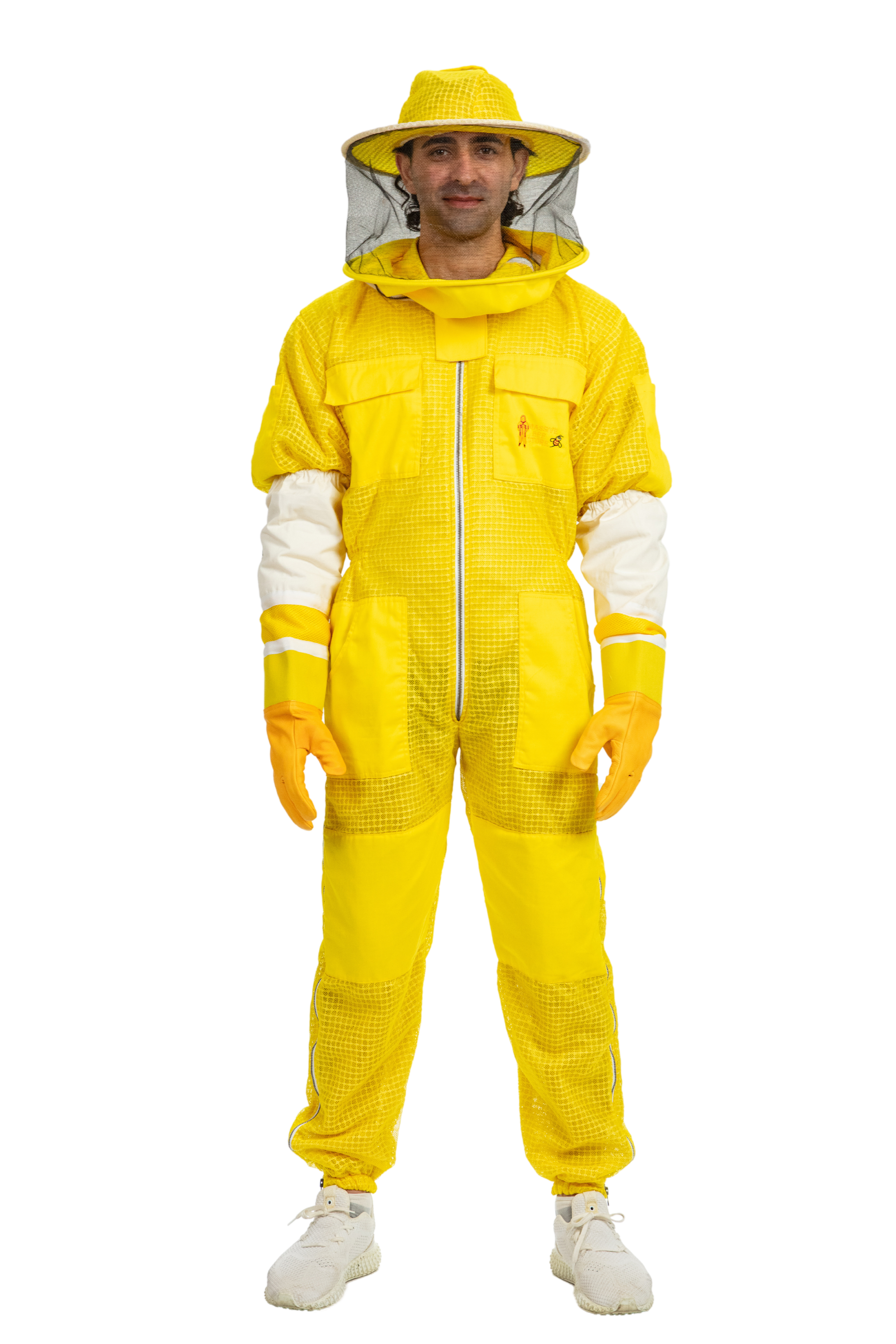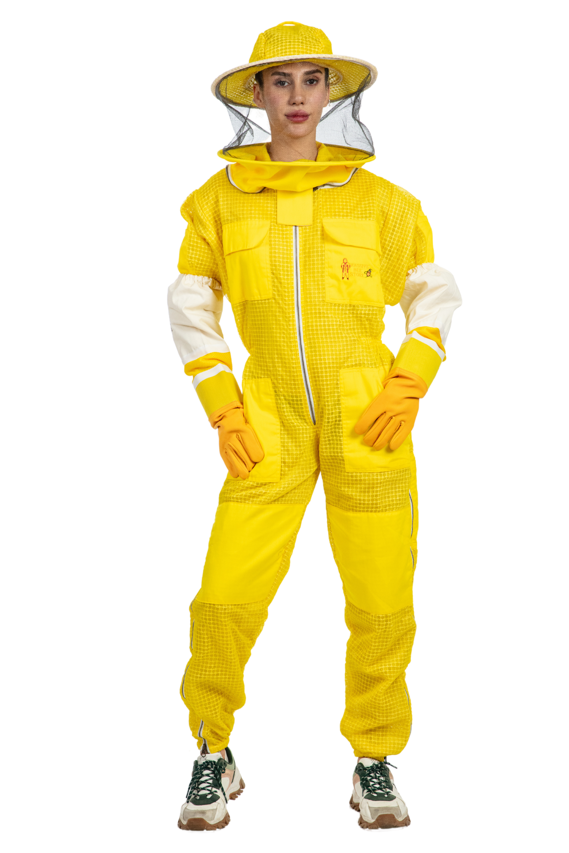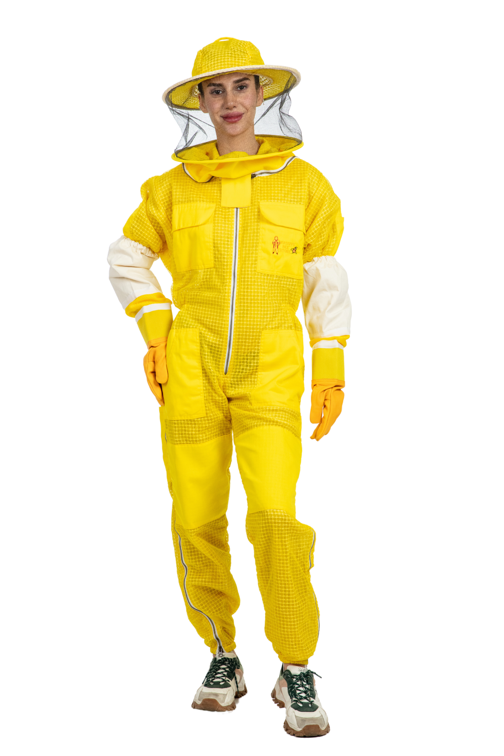 * One Yellow Beekeeping Ventilated Suit With Round Veil.