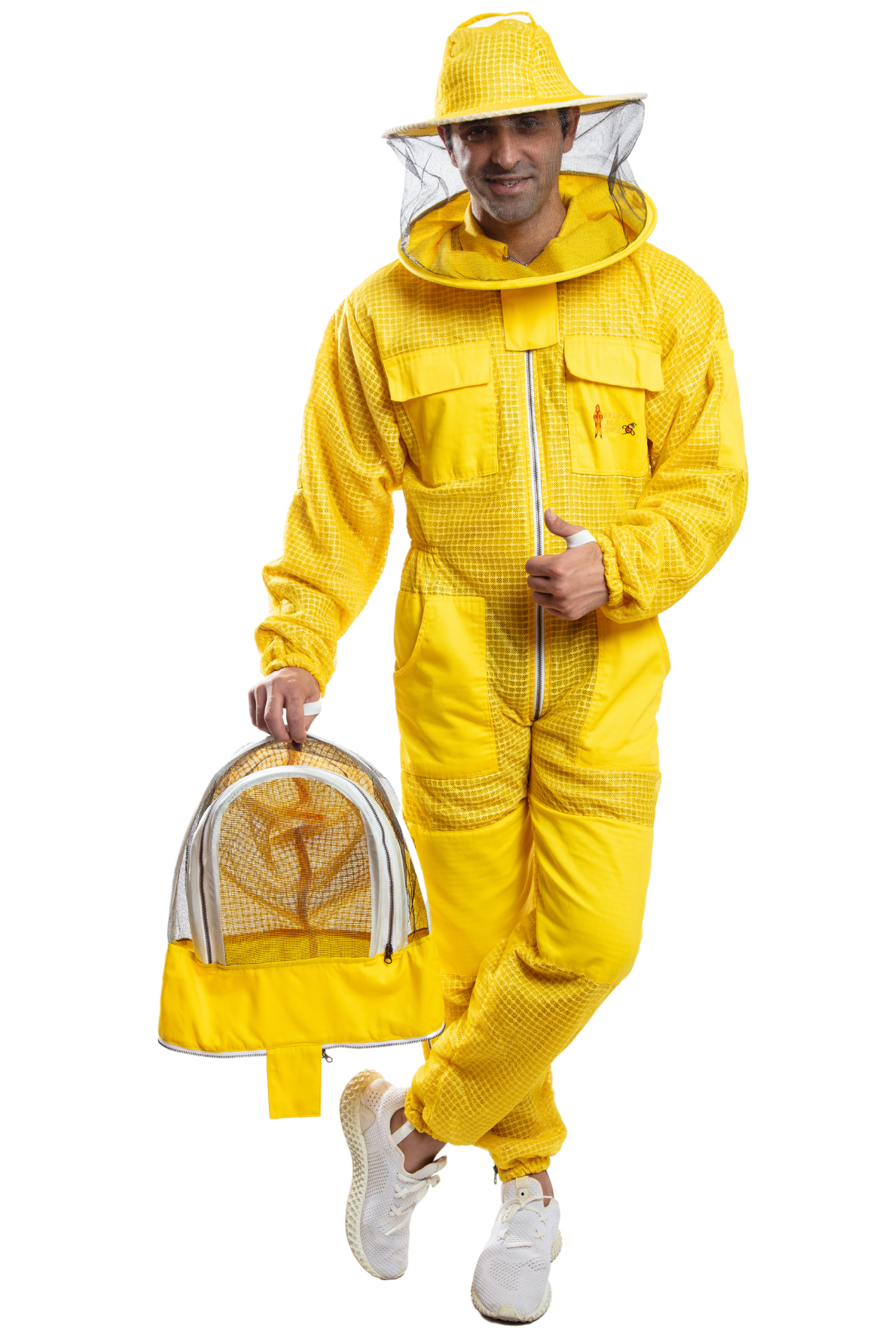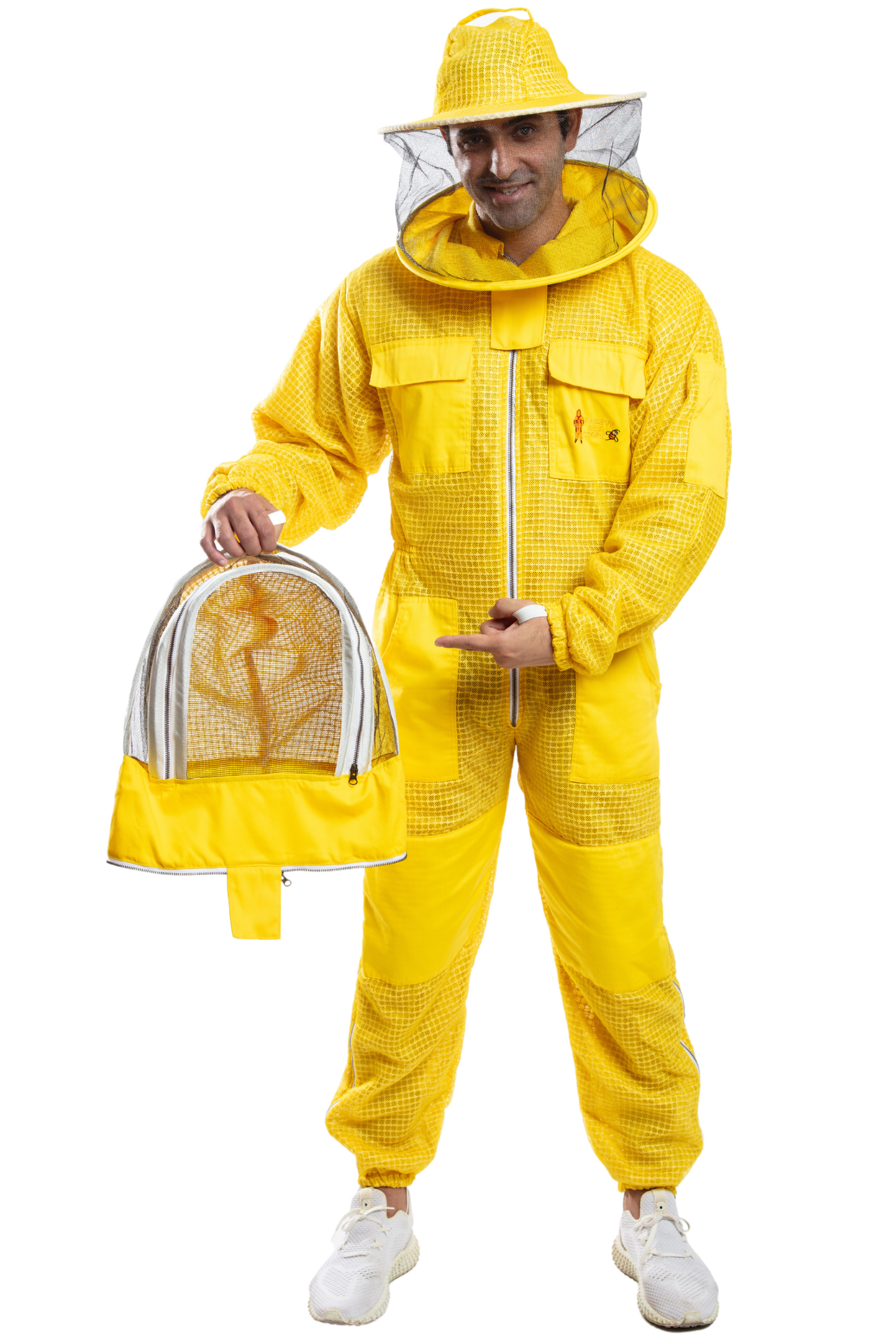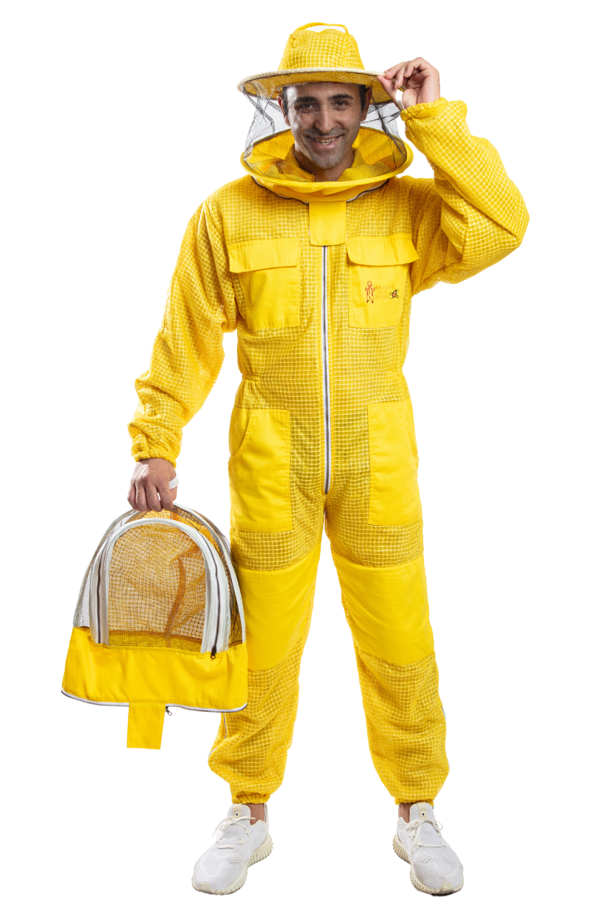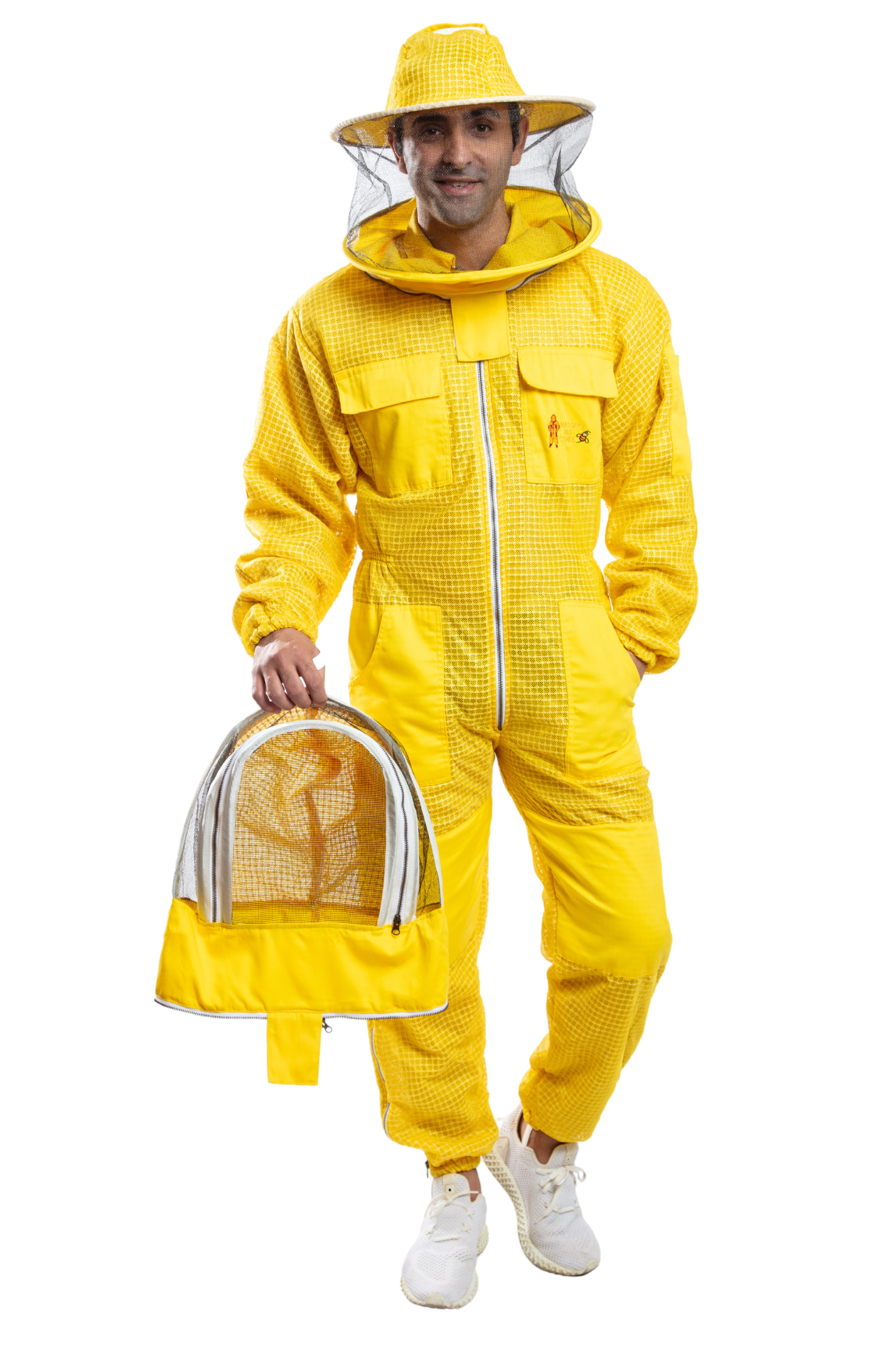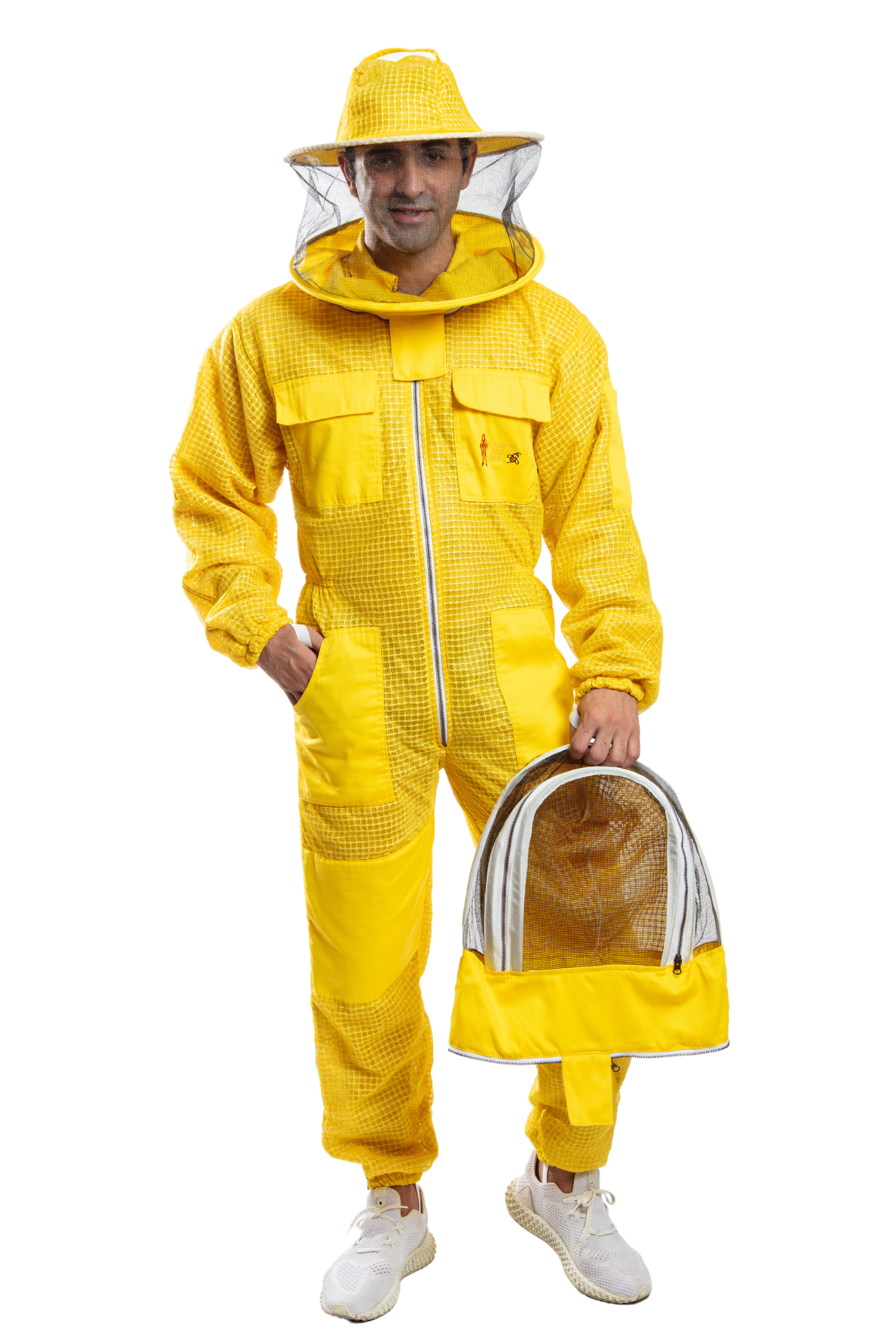Yellow Beekeeping Ventilated Suits with Round Veil & Fencing Veil