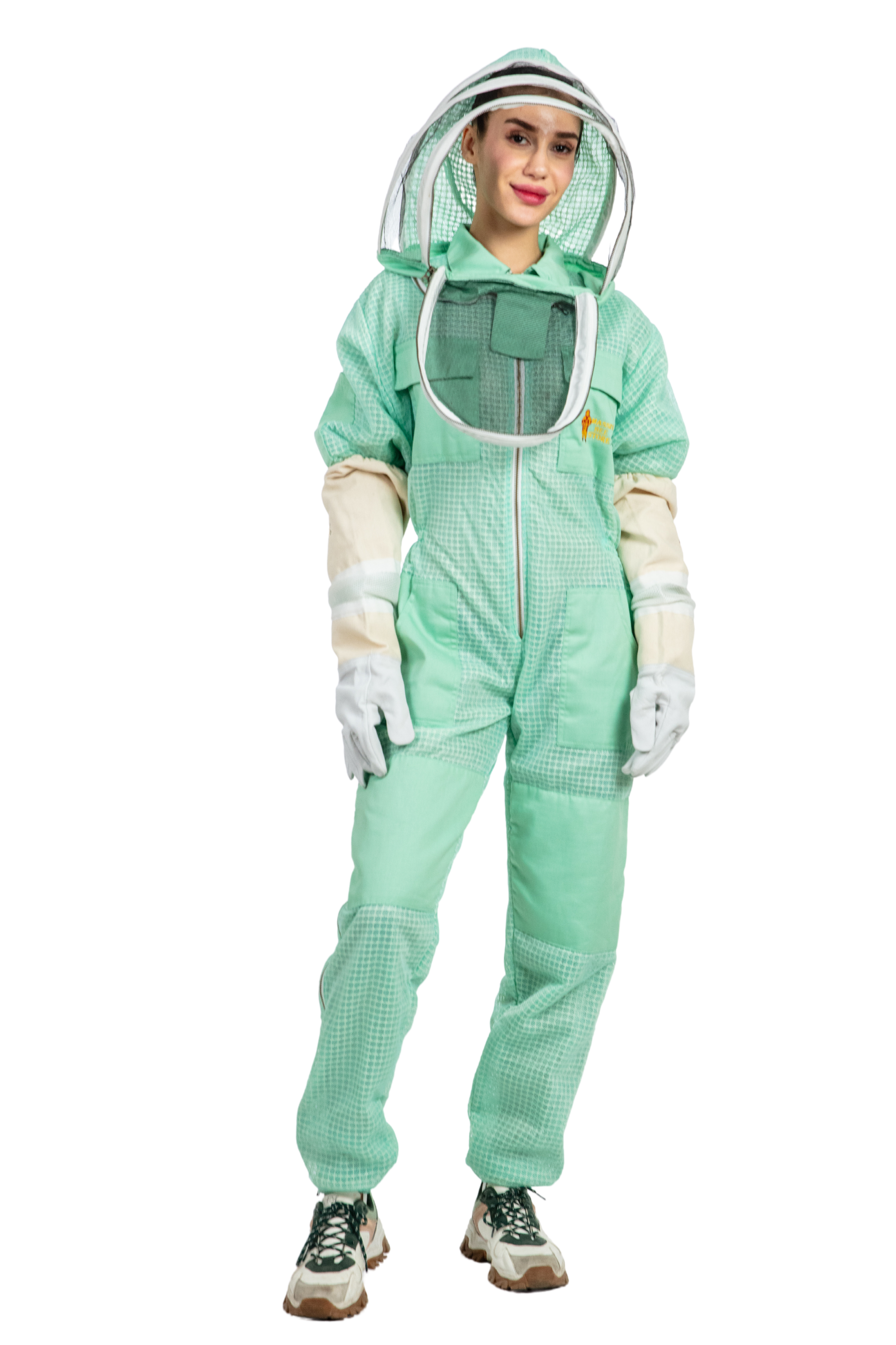 Unique protective Beekeeping Gear is made of finest high quality 3-Layers of fabric. The inner and outer Layers are made of Polyester Cotton mesh. EVA mesh fabric is sandwiched between Polyester cotton Mesh. Through this inner layer overall thickness of the beekeeping Suit is 4 mm. The thicknesses of the Suit keep bees well above your skin and have less chance of a successful sting. Although, the Jacket is made of permeable materials so it provides a high degree of ventilation. So, if you live in hot region where climate get very hot in the Bee season, then you really consider us.