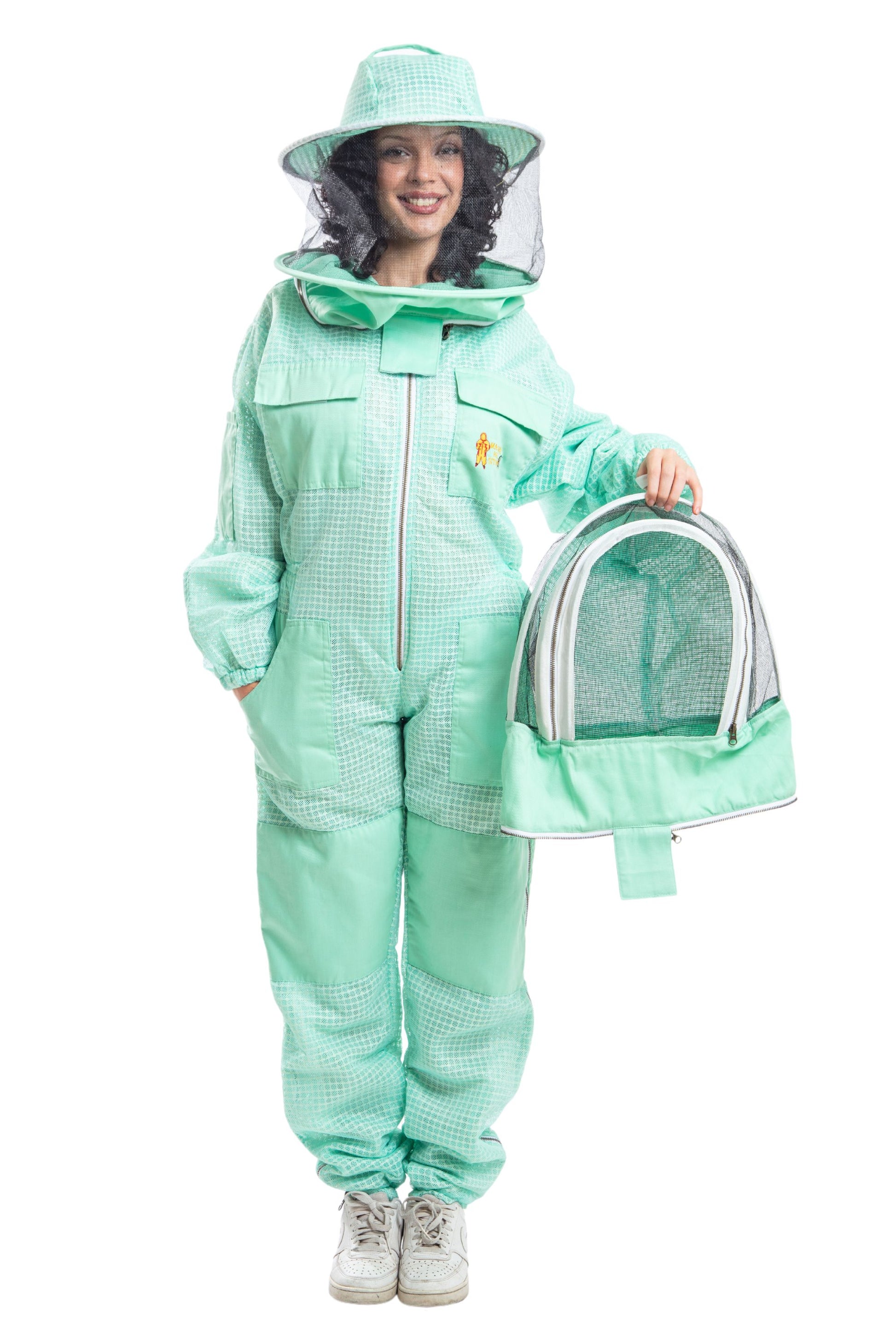 Unique protective Beekeeping Gear is made of finest high quality 3-Layers of fabric. The inner and outer Layers are made of Polyester Cotton mesh. EVA mesh fabric is sandwiched between Polyester cotton Mesh. Through this inner layer overall thickness of the beekeeping Suit is 4 mm. The thicknesses of the Suit keep bees well above your skin and have less chance of a successful sting. Although, the Jacket is made of permeable materials so it provides a high degree of ventilation. So, if you live in hot region where climate get very hot in the Bee season, then you really consider us.