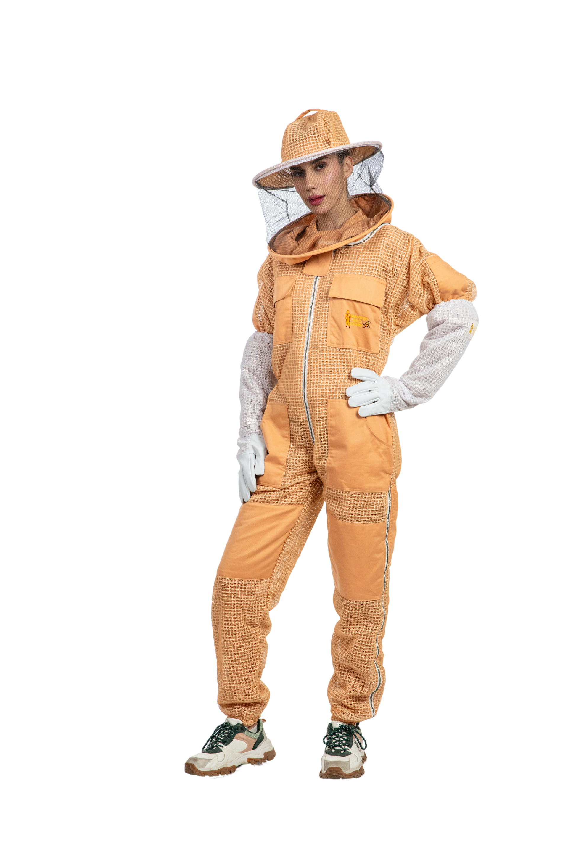 Two chest and waist pockets with flap Velcro closures, heavy duty zipper at the chest and neck as self-supporting collapsible veil. Designed for comfort and sting protection, the professional Bee Suit is tailored specially for beekeeping and bee control.