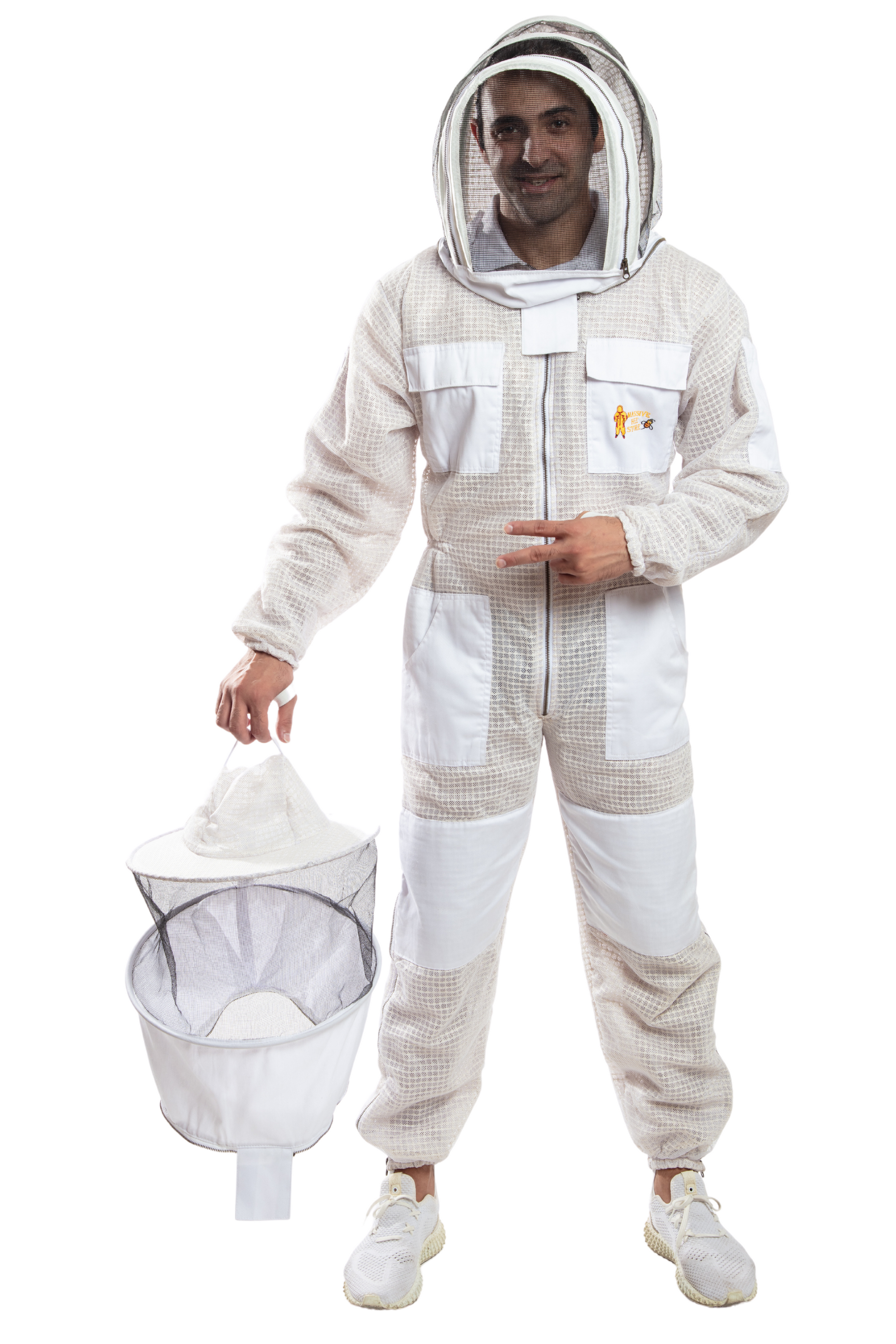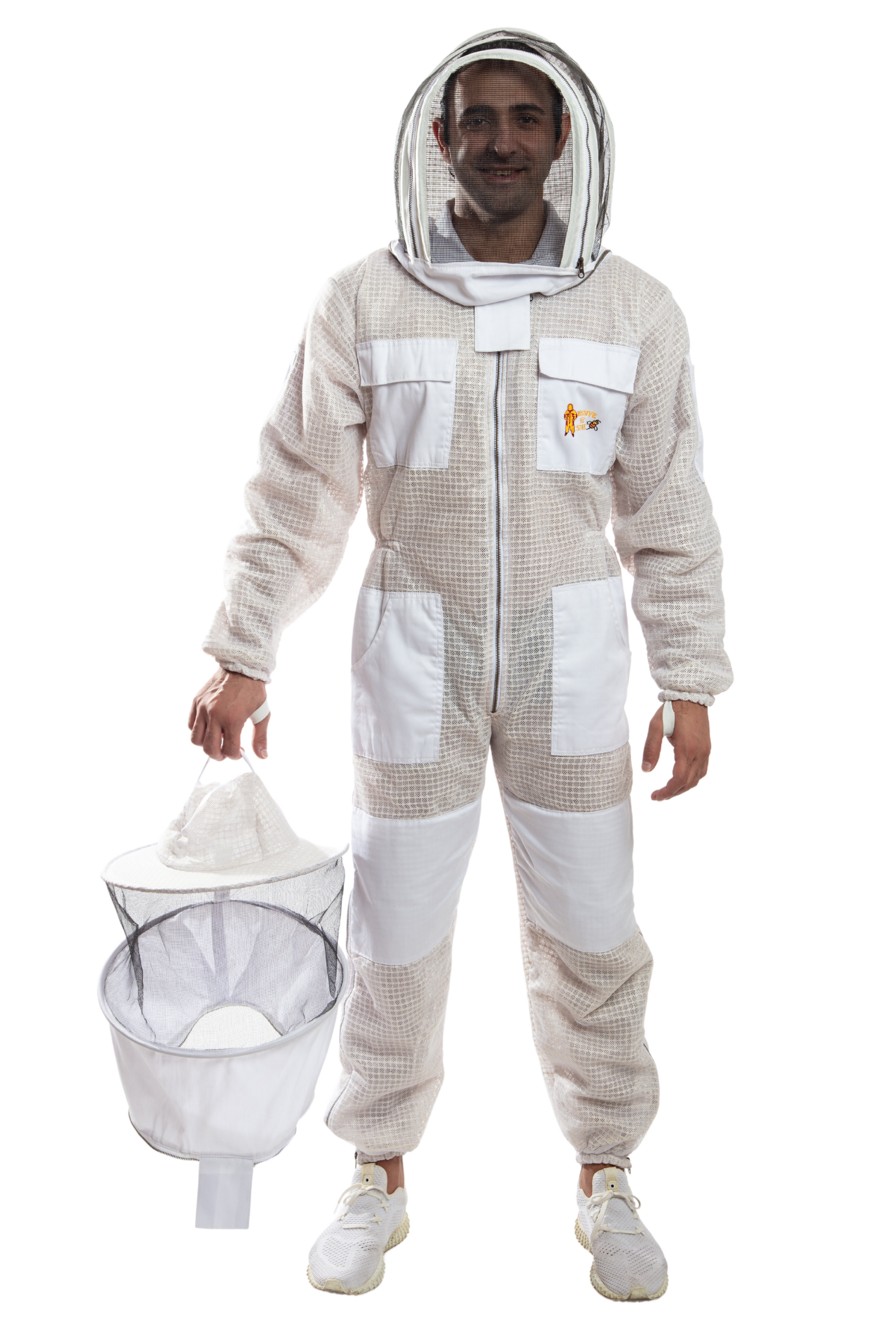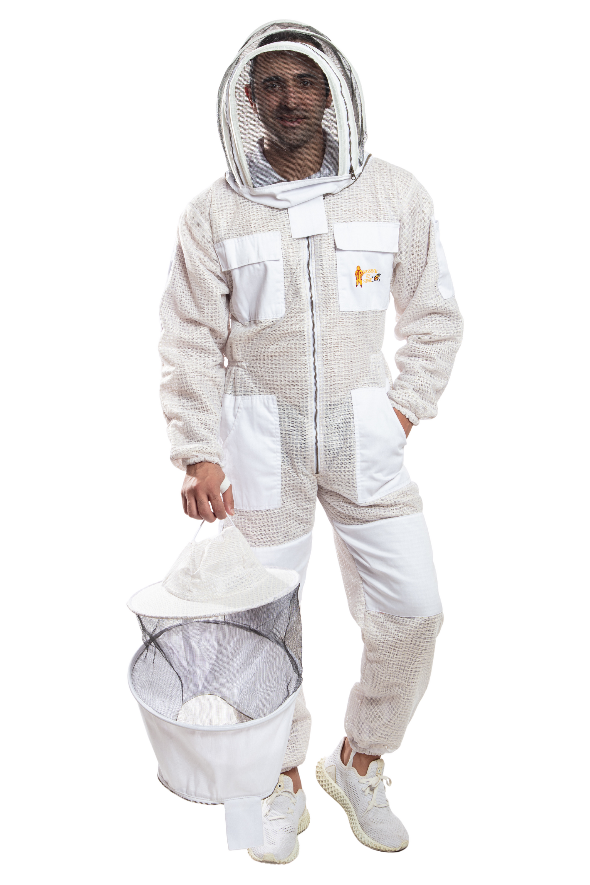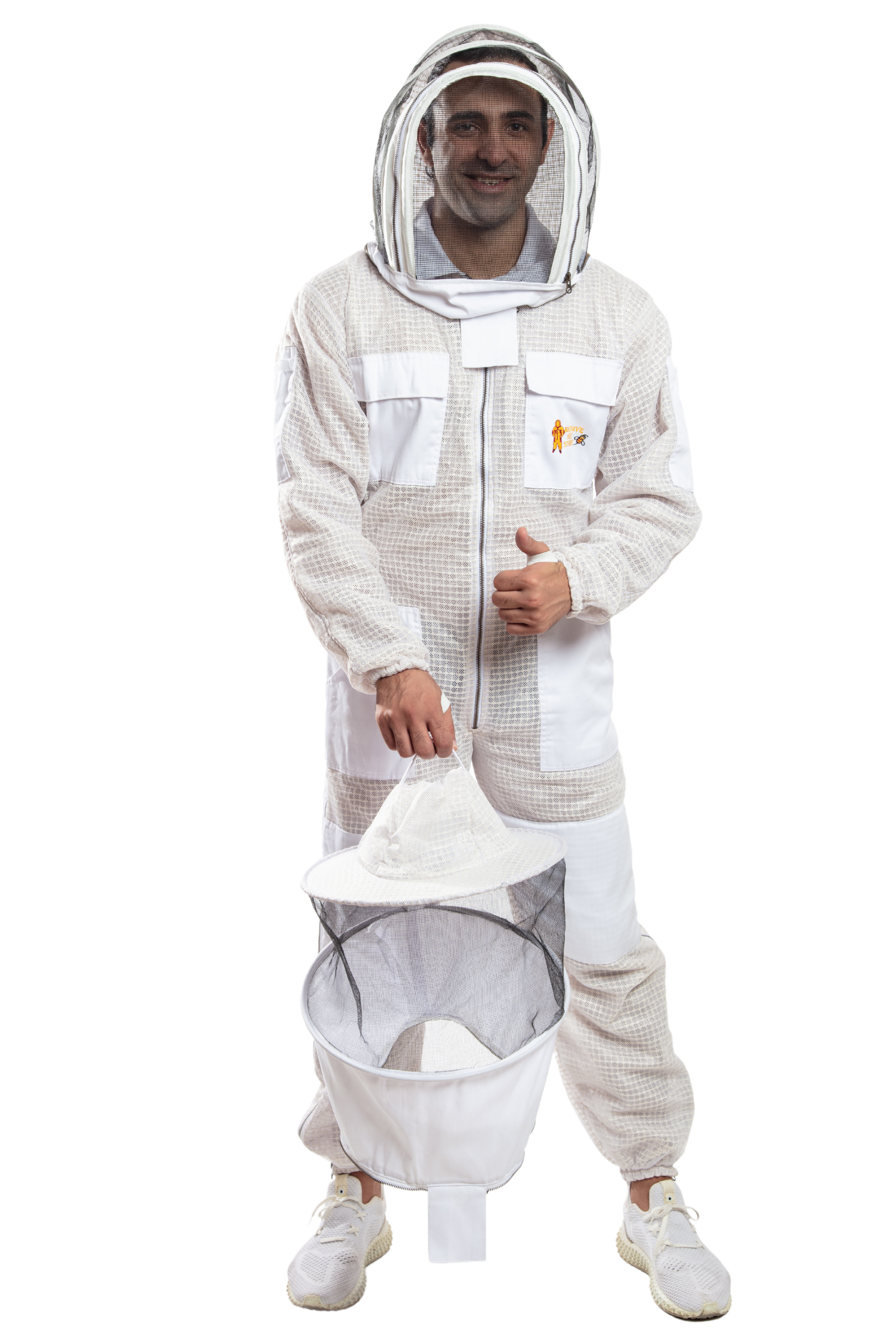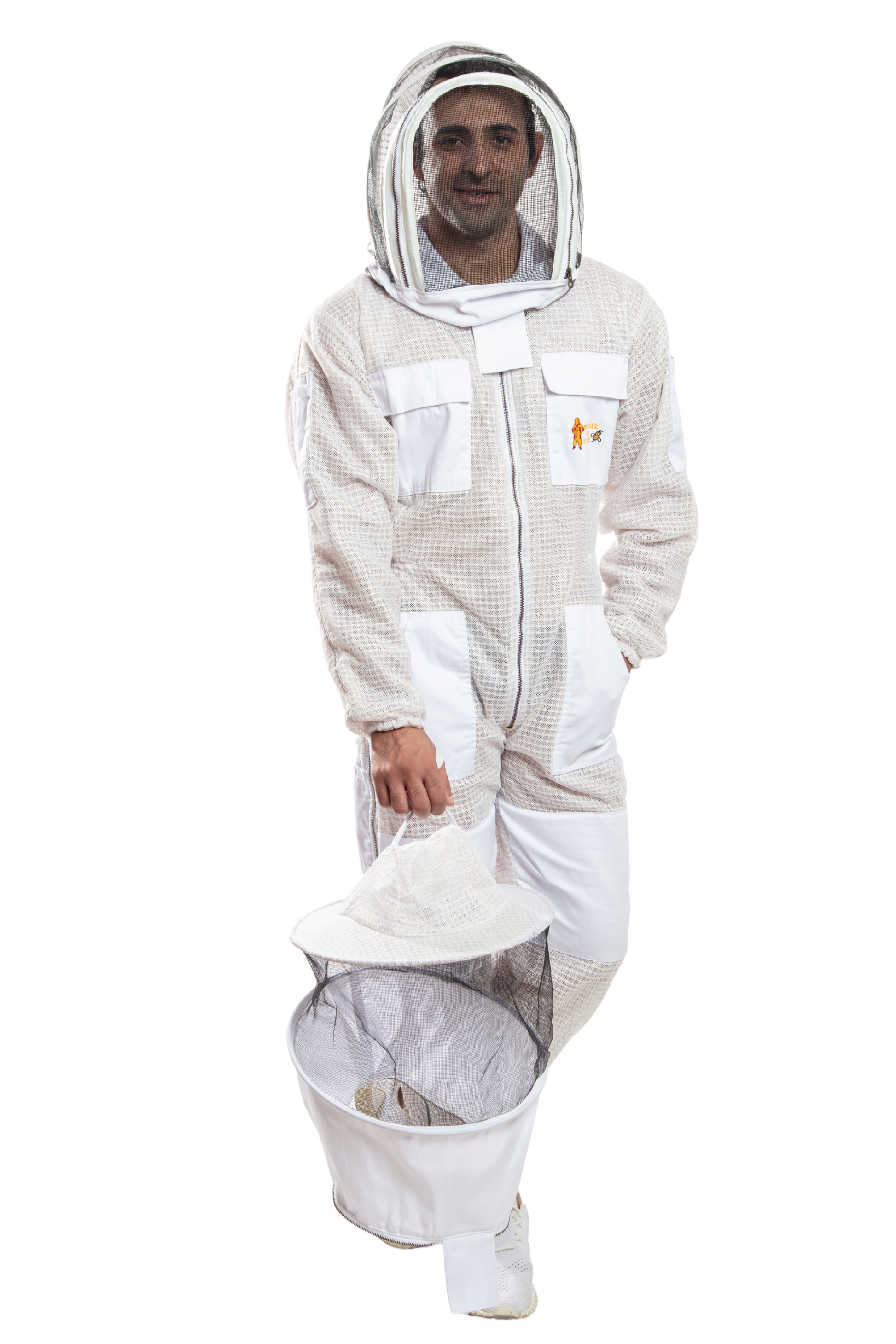 Two chest and waist pockets with flap Velcro closures, heavy duty zipper at the chest and neck as self-supporting collapsible veil. Designed for comfort and sting protection, the professional Bee Suit is tailored specially for beekeeping and bee control.